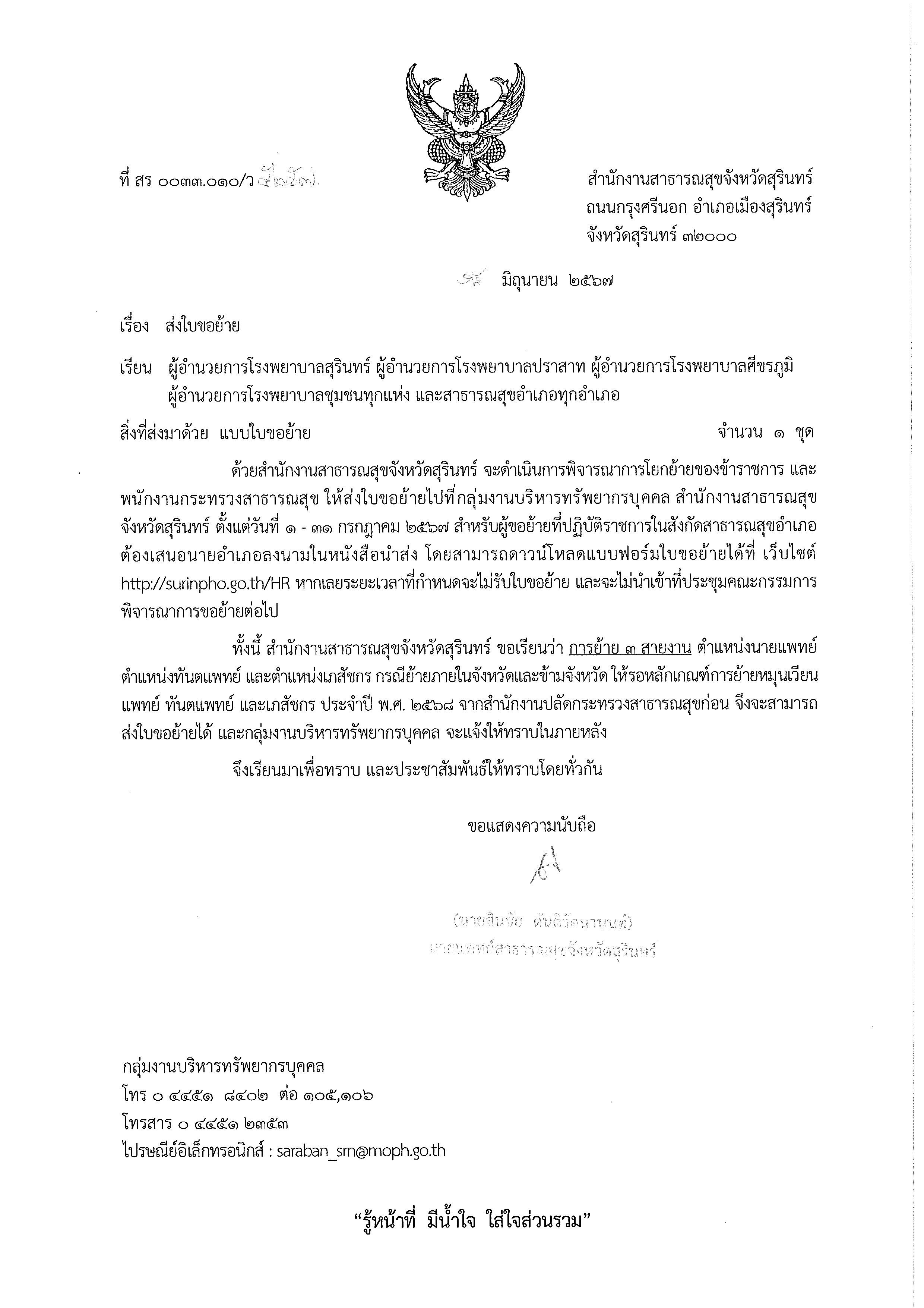 แบบใบขอย้าย เพื่อพิจารณาการโยกย้าย
