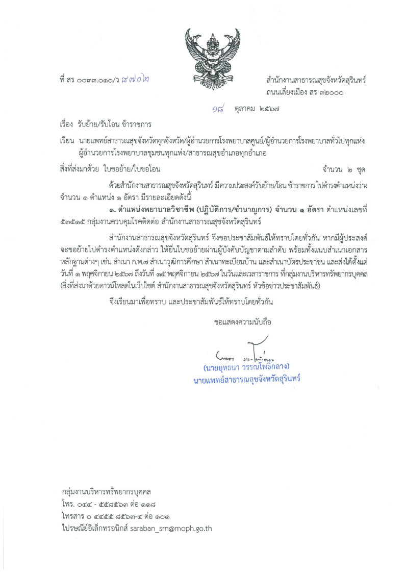 รับย้าย-รับโอน ข้าราชการ (1 ตำแหน่ง 1 อัตรา)