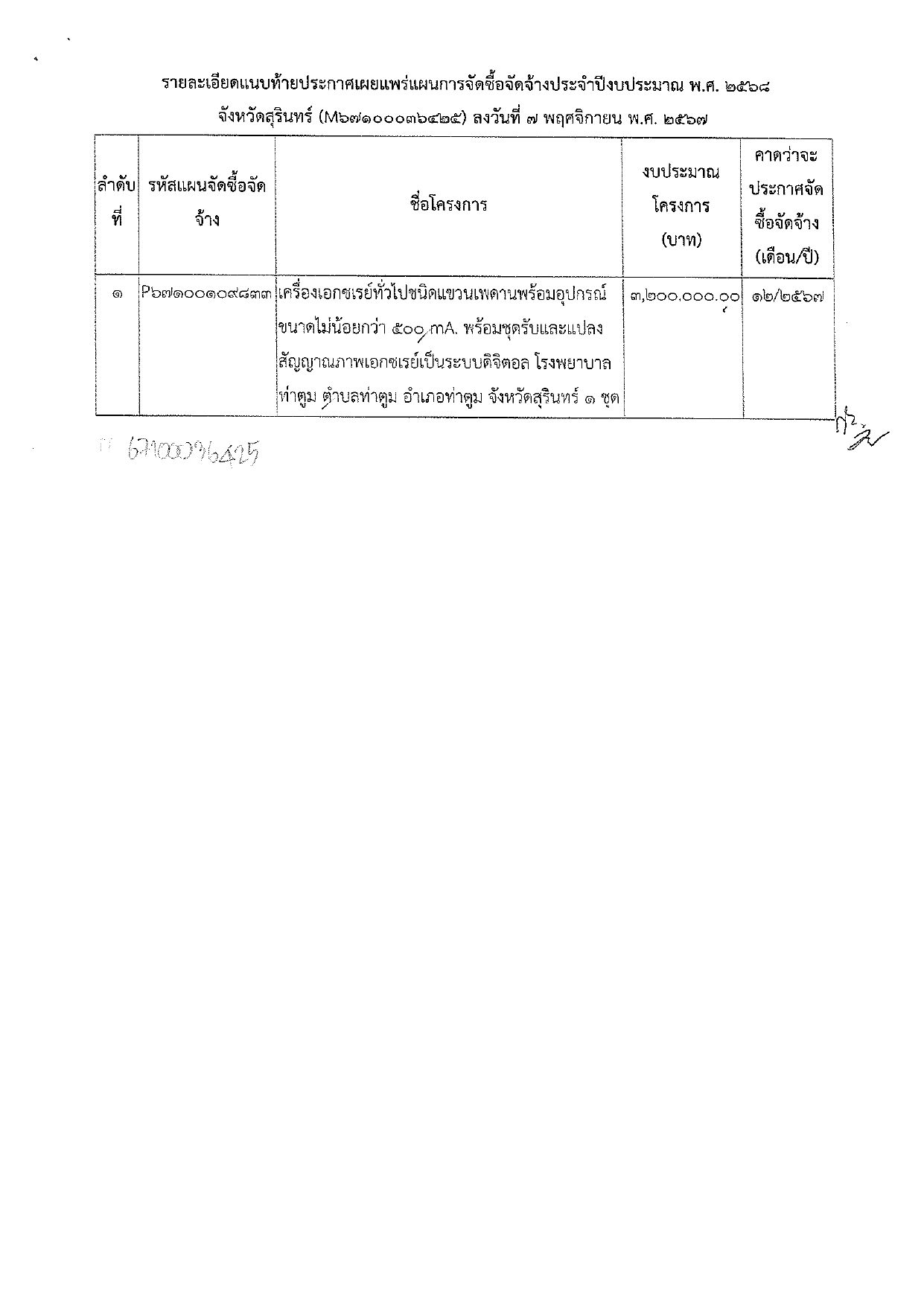 ประกาศจังหวัดสุรินทร์ เรื่องเผยแพร่แผนจัดซื้อจัดจ้าง ประจำปีงบประมาณ พ.ศ. 2568
