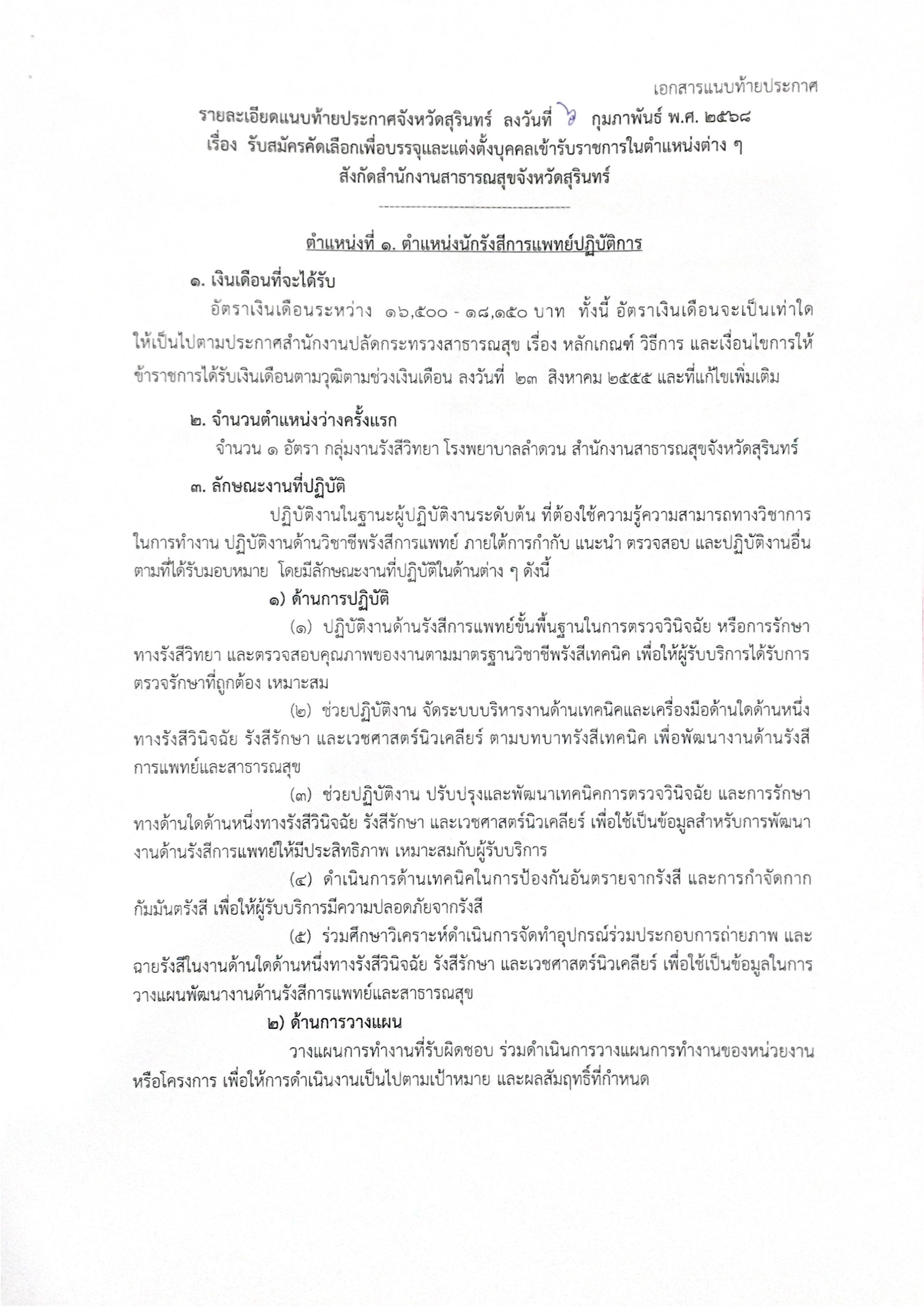 รับสมัครคัดเลือกบุคคลเพื่อบรรจุและแต่งตั้งบุคคลเข้ารับราชการสังกัดสำนักงานสาธารณสุขจังหวัดสุรินทร์