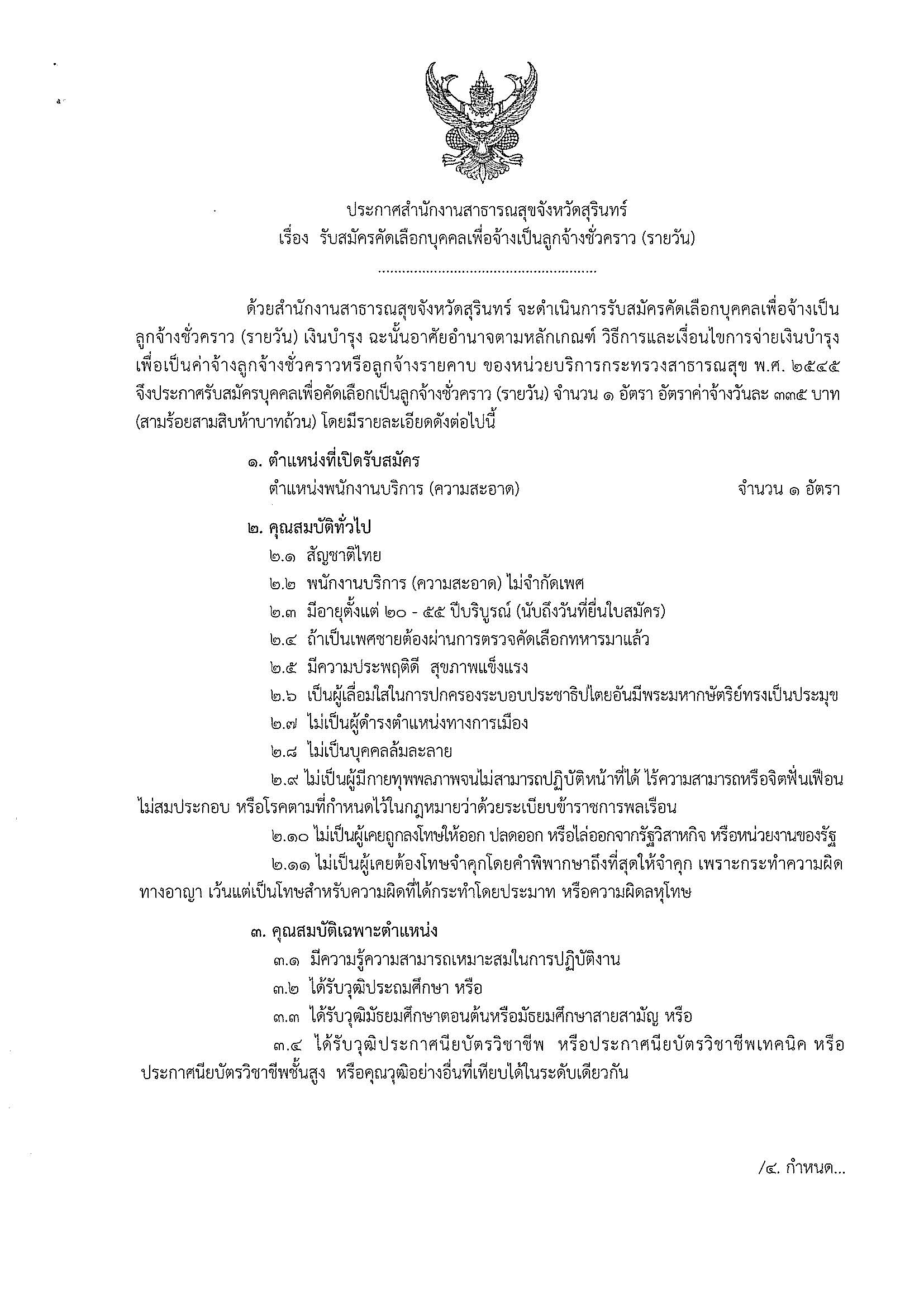 รับสมัครคัดเลือกบุคคลเพื่อเป็นลูกจ้างชั่วคราว(รายวัน) ตำแหน่ง พนักงานทำความสะอาด