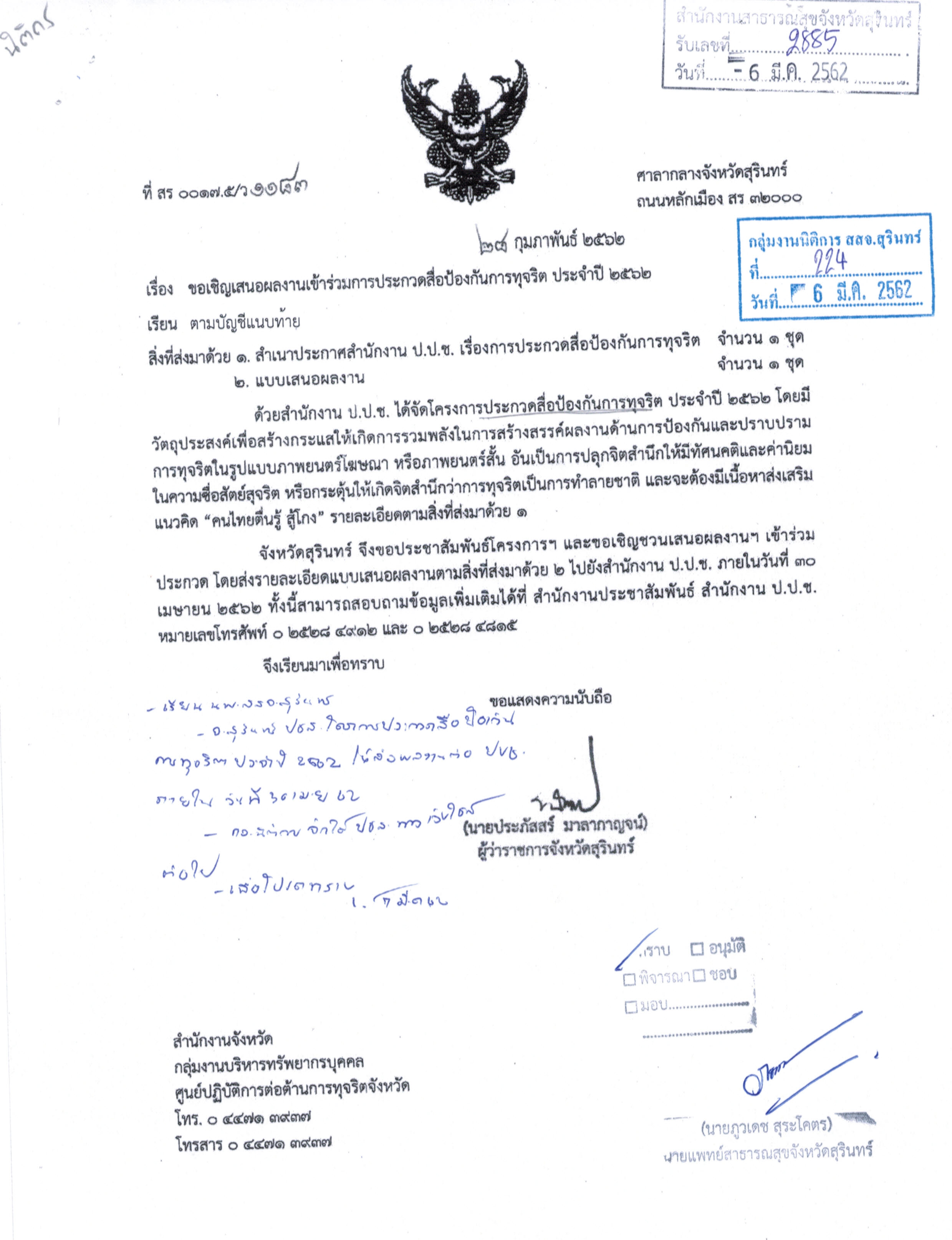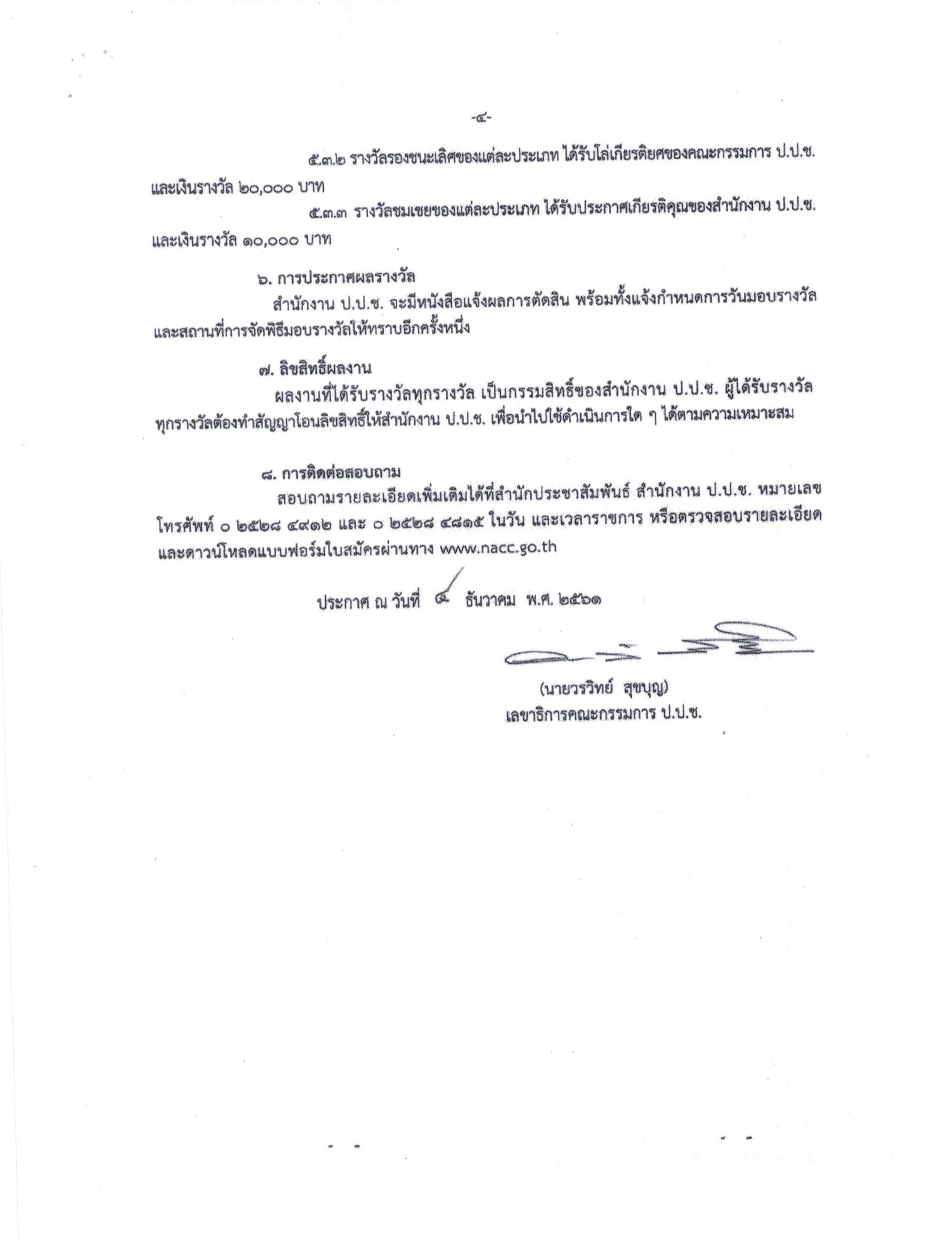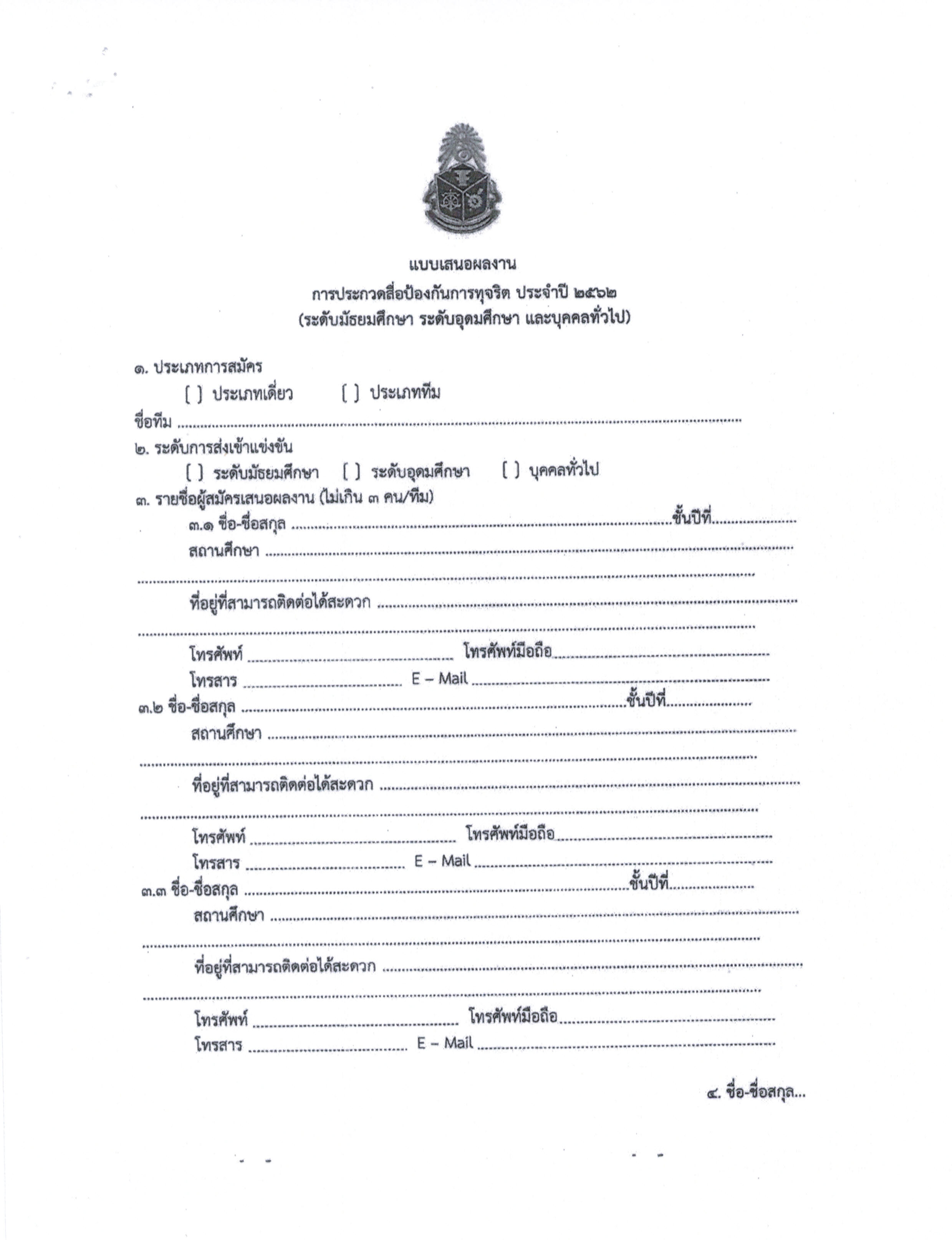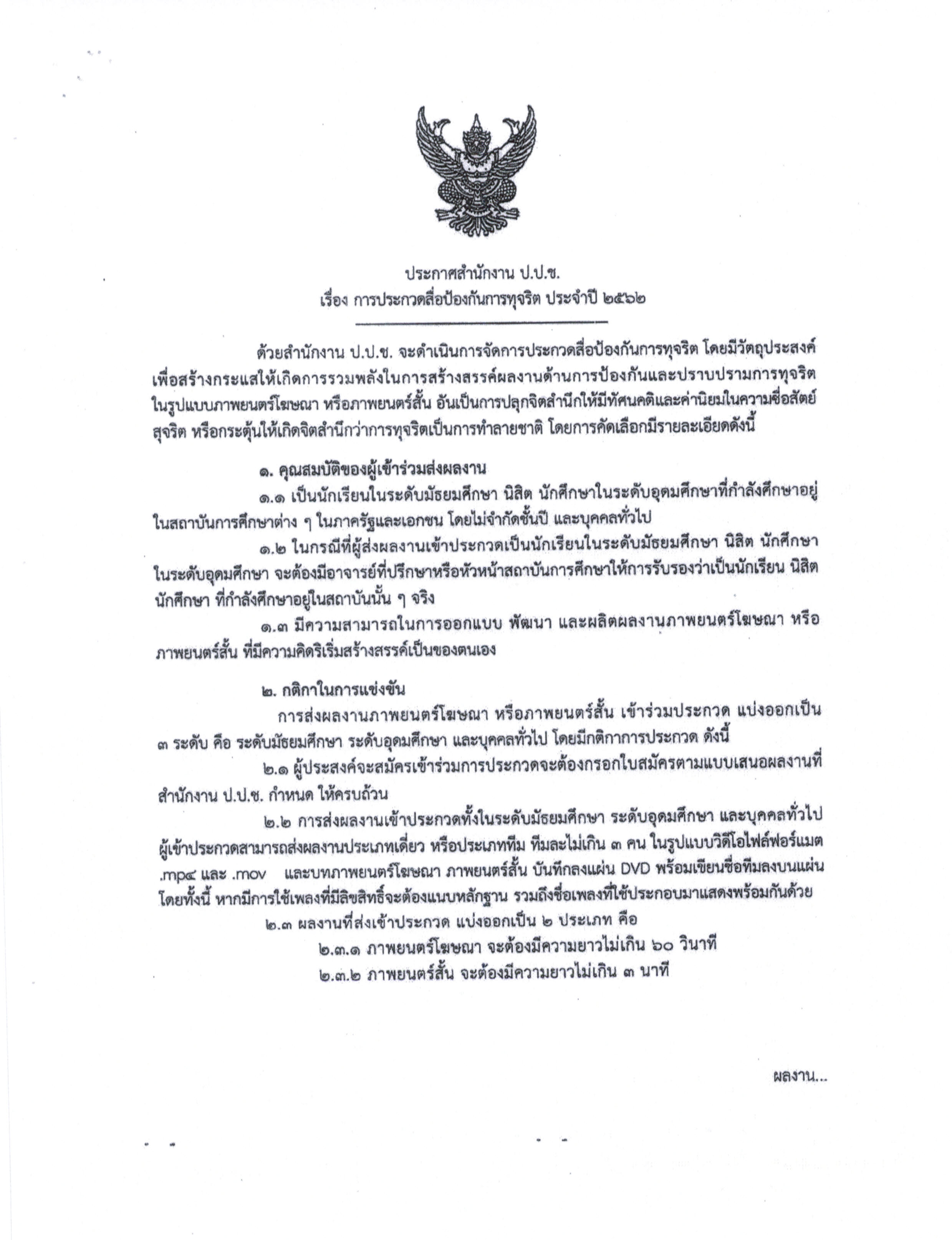 ขอเชิญเสนอผลงานเข้าร่วมประกวดสื่อป้องกันการทุจริต ประจำปี 2562