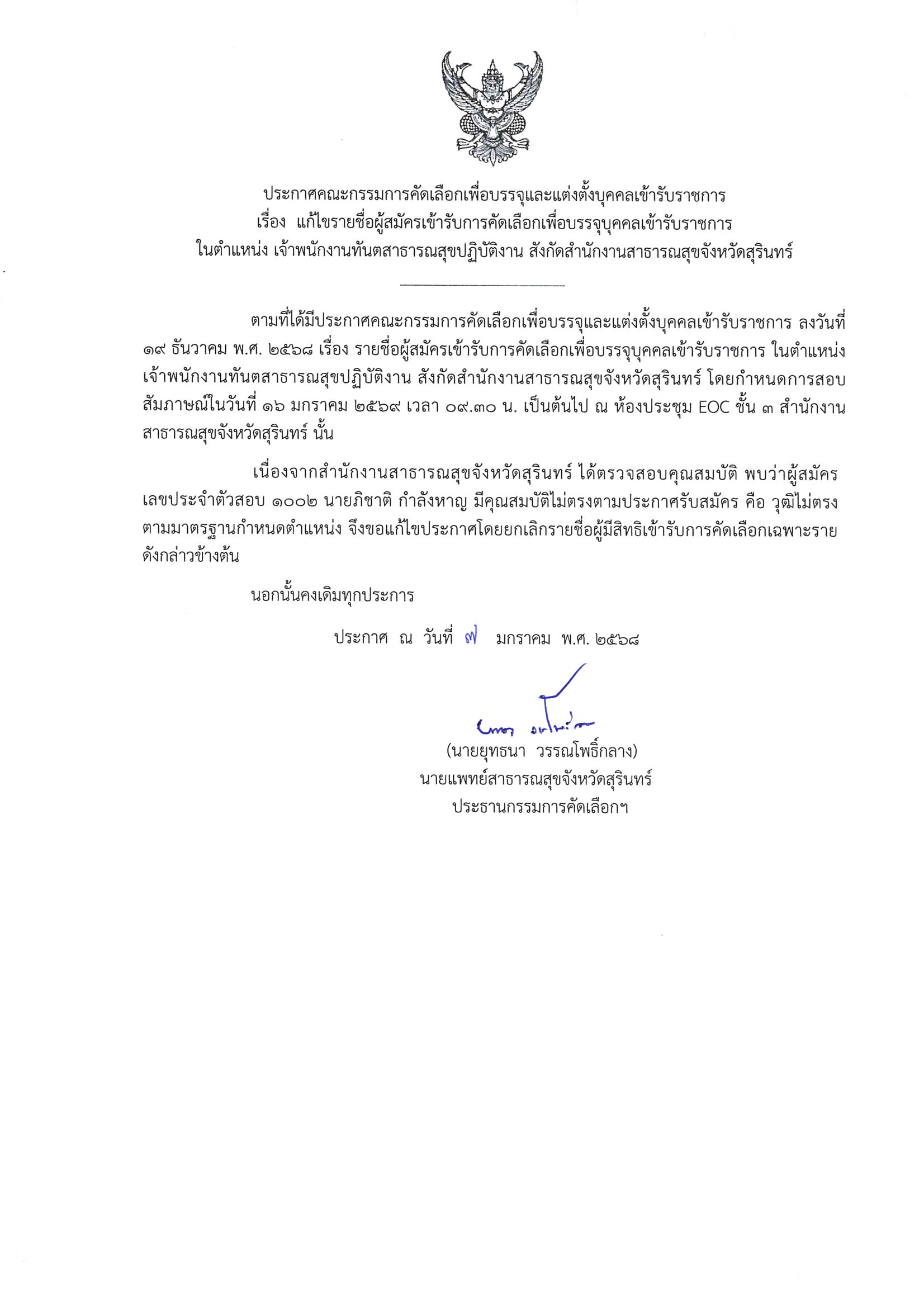 แก้ไขรายชื่อผู้สมัครฯ เพื่อบรรจุเข้ารับราชการ จพ.ทันตสาธารณสุข