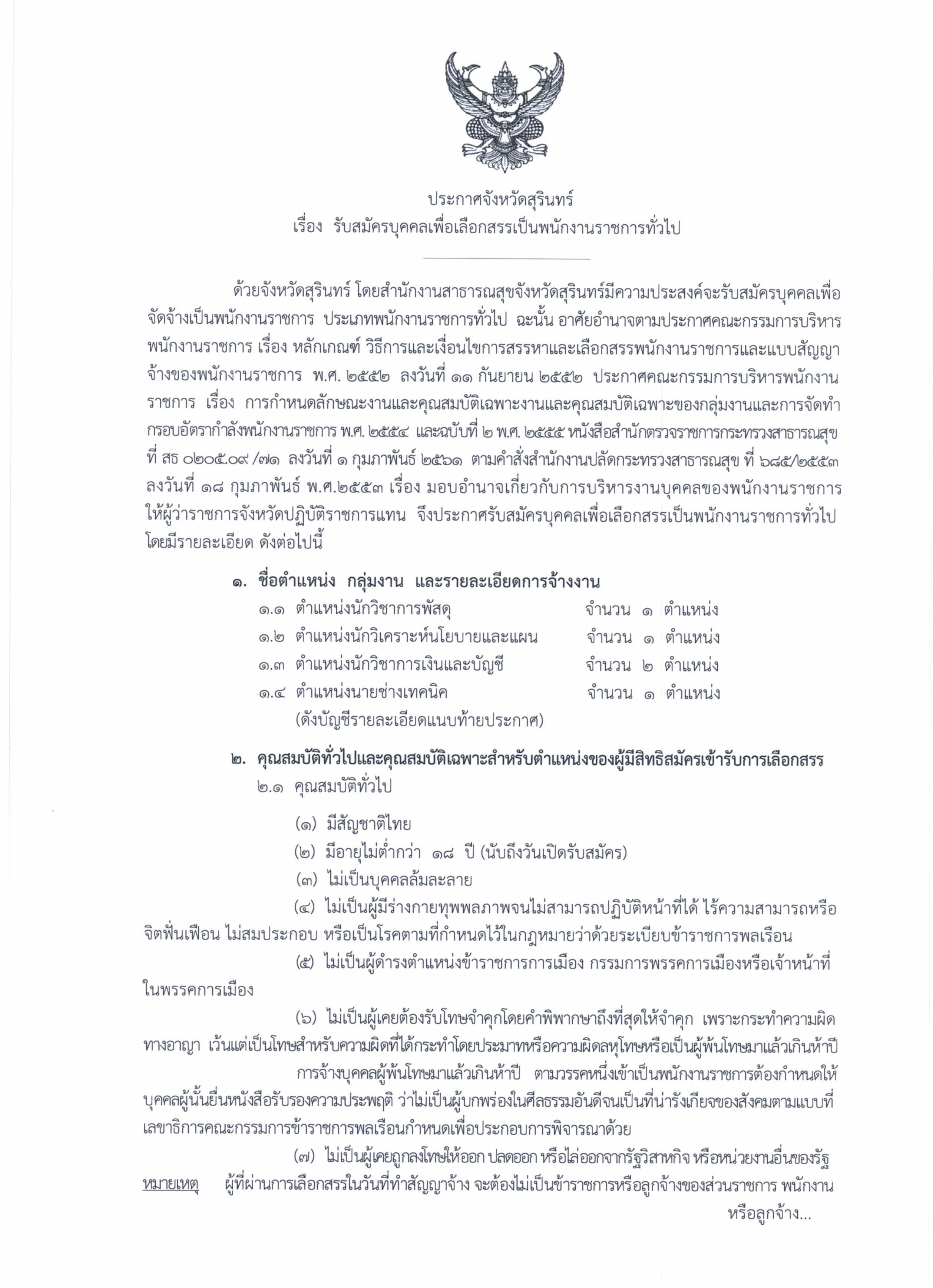 รับสมัครบุคคลเพื่อเลือกสรรเป็นพนักงานราชการทั่วไป จำนวน 4 ตำแหน่ง 5 อัตรา ตั้งแต่วันที่ 13 - 22 พฤษภาคม 2562