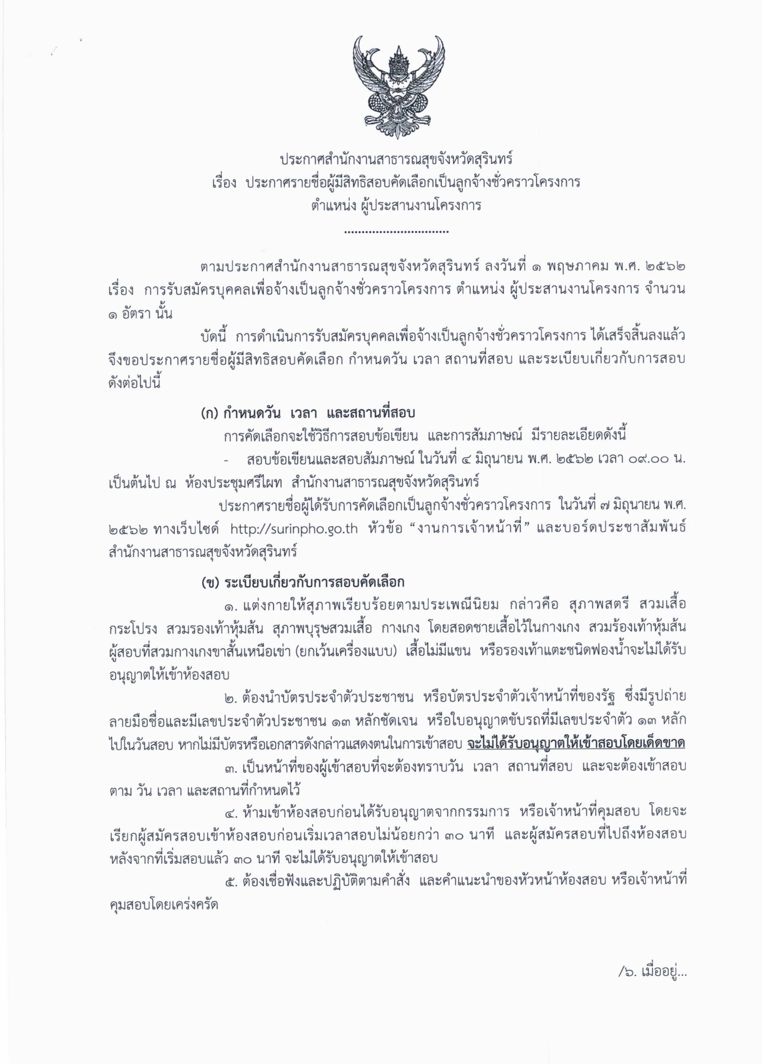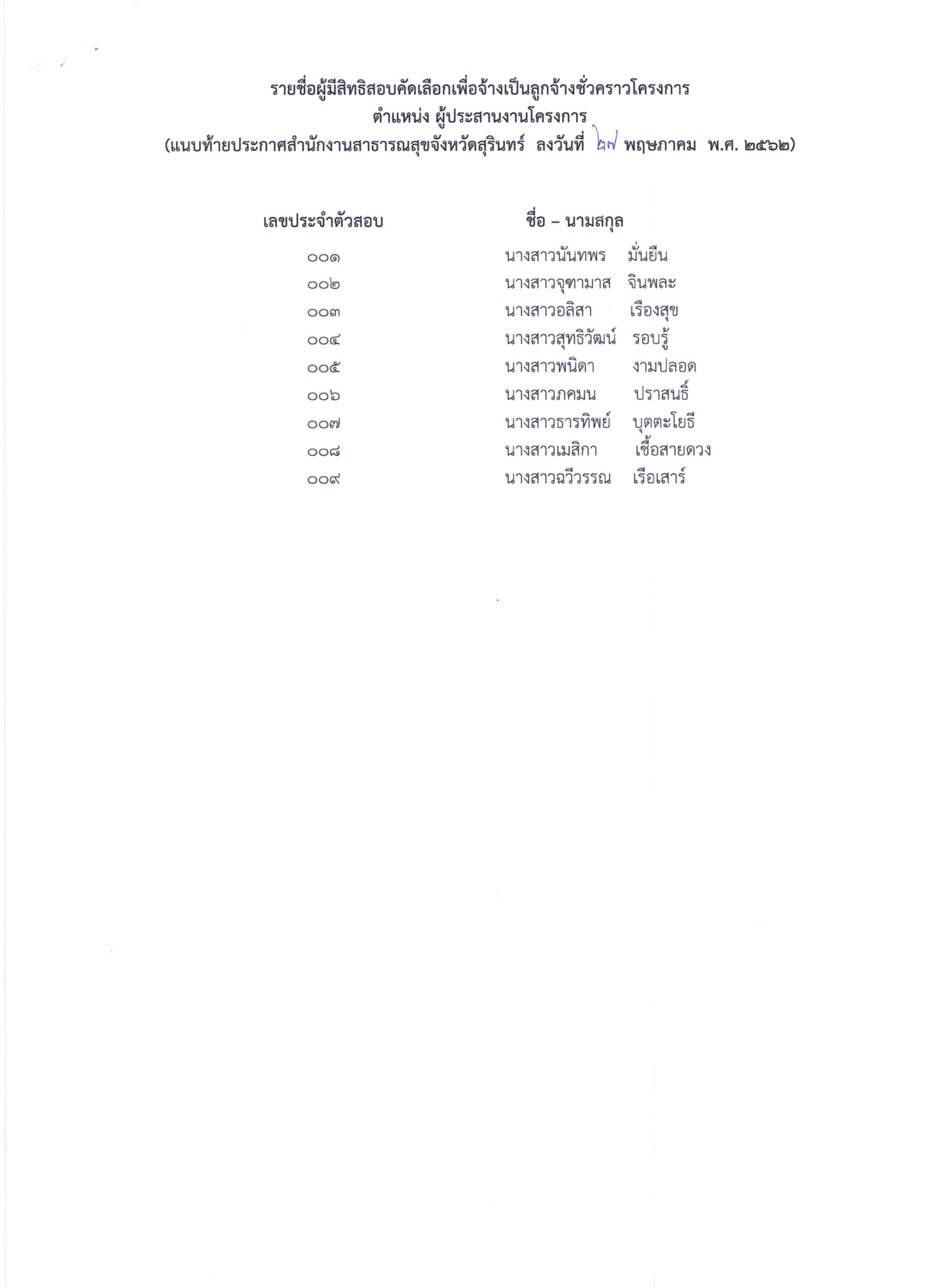 ประกาศรายชื่อผู้มีสิทธิเข้ารับการคัดเลือกลูกจ้างชั่วคราวโครงการ ตำแหน่งผู้ประสานงานโครงการ