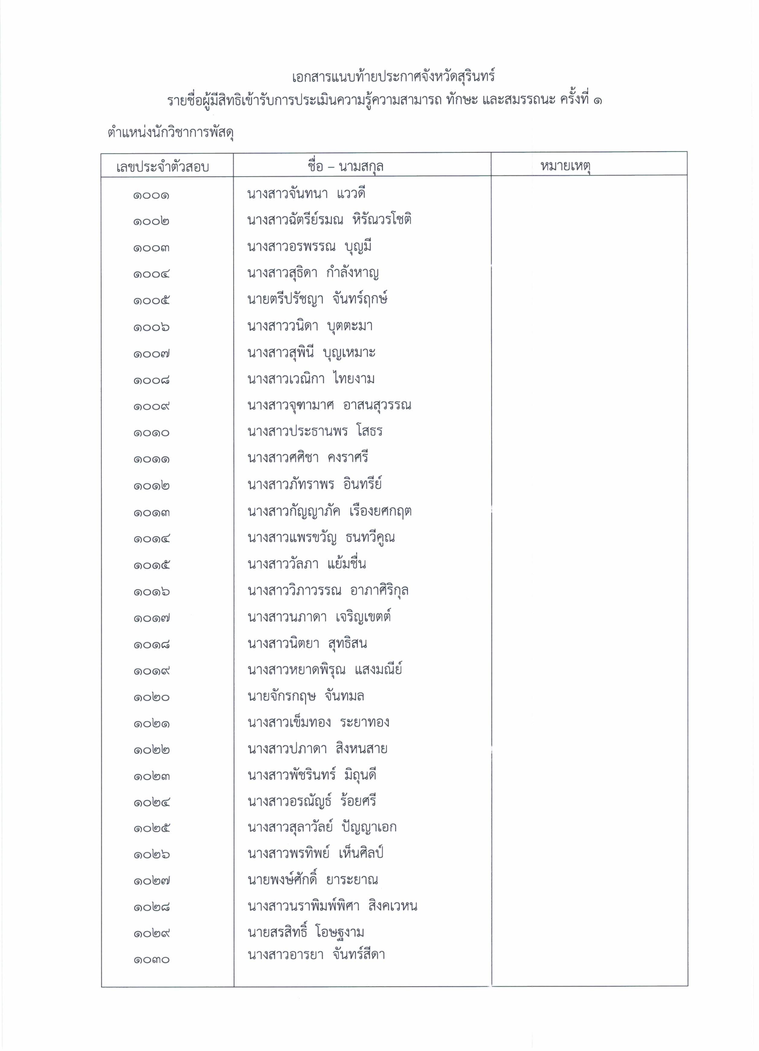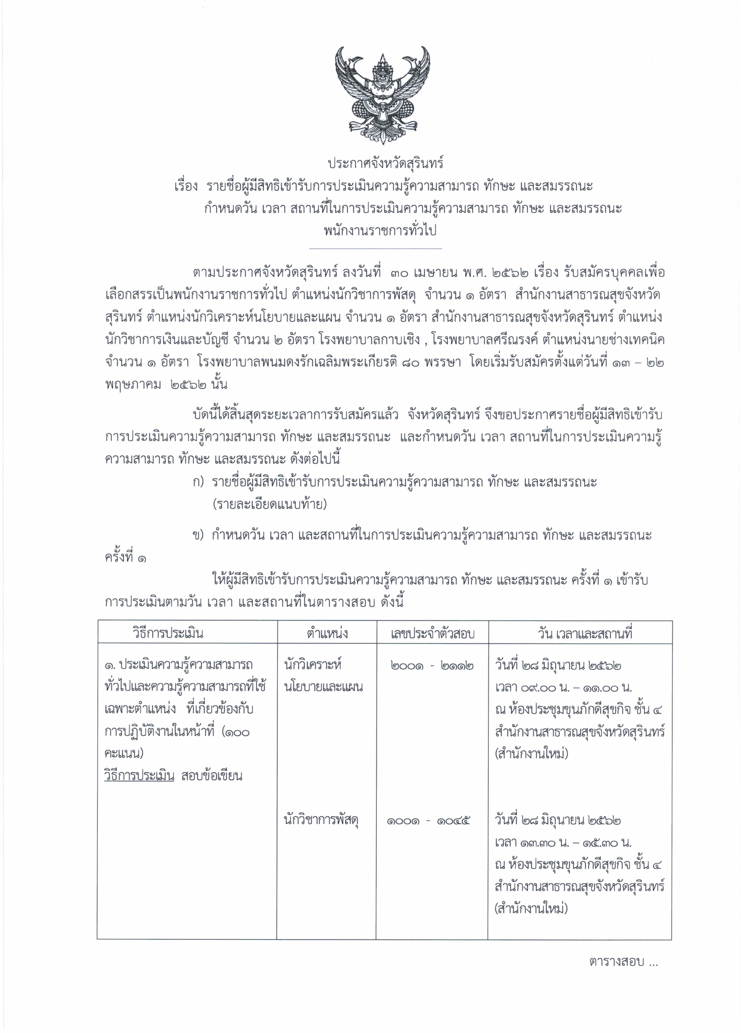 ประกาศรายชื่อผู้มีสิทธิเข้ารับการประเมินความรู้ความสามารถ ทักษะ และสมรรถนะ กำหนดวัน เวลา สถานที่ในการประเมินความรู้ความสามารถ ทักษะ และสมรรถนะพนักงานราชการทั่วไป 4 ตำแหน่ง