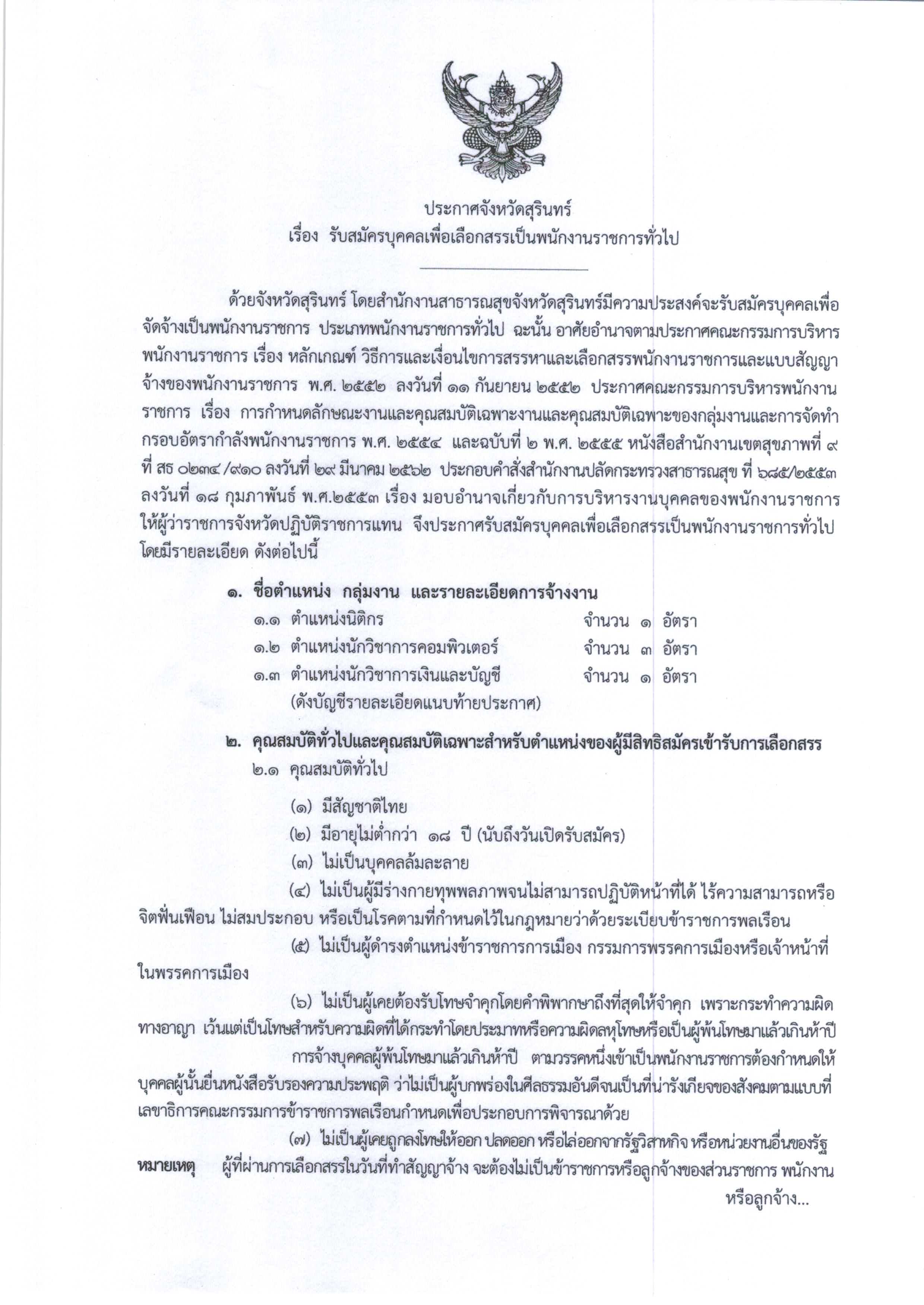 ประกาศรับสมัครบุคคลเพื่อเลือกสรรเป็นพนักงานราชการทั่วไป 3 ตำแหน่ง 5 อัตรา