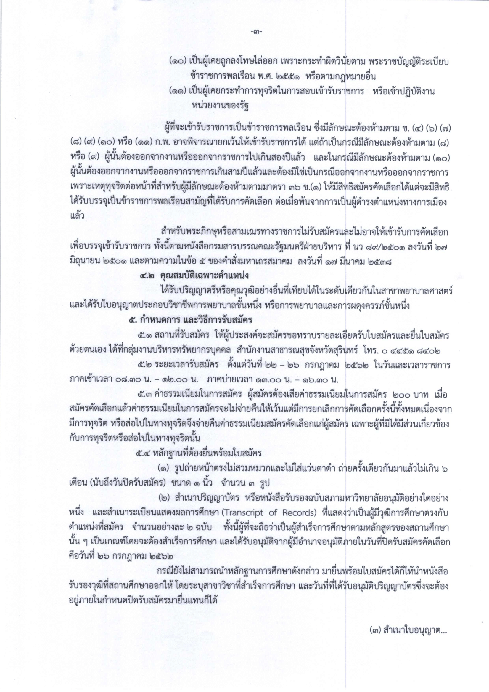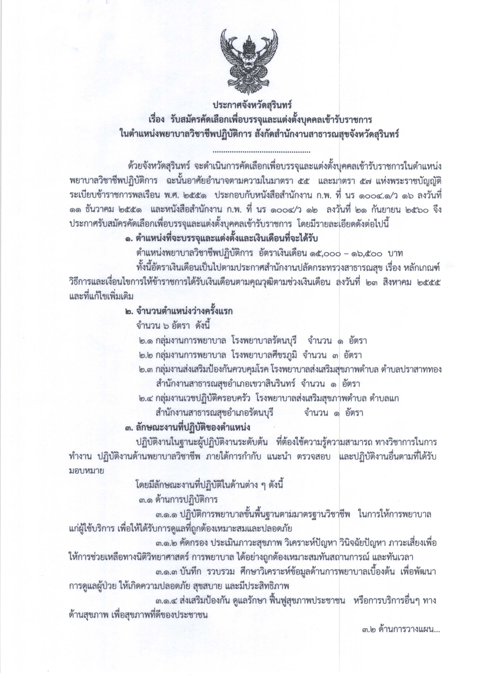 รับสมัครบุคคลเข้ารับราชการในตำแหน่งพยาบาลวิชาชีพปฏิบัติการ สังกัดสำนักงานสาธารณสุขจังหวัดสุรินทร์