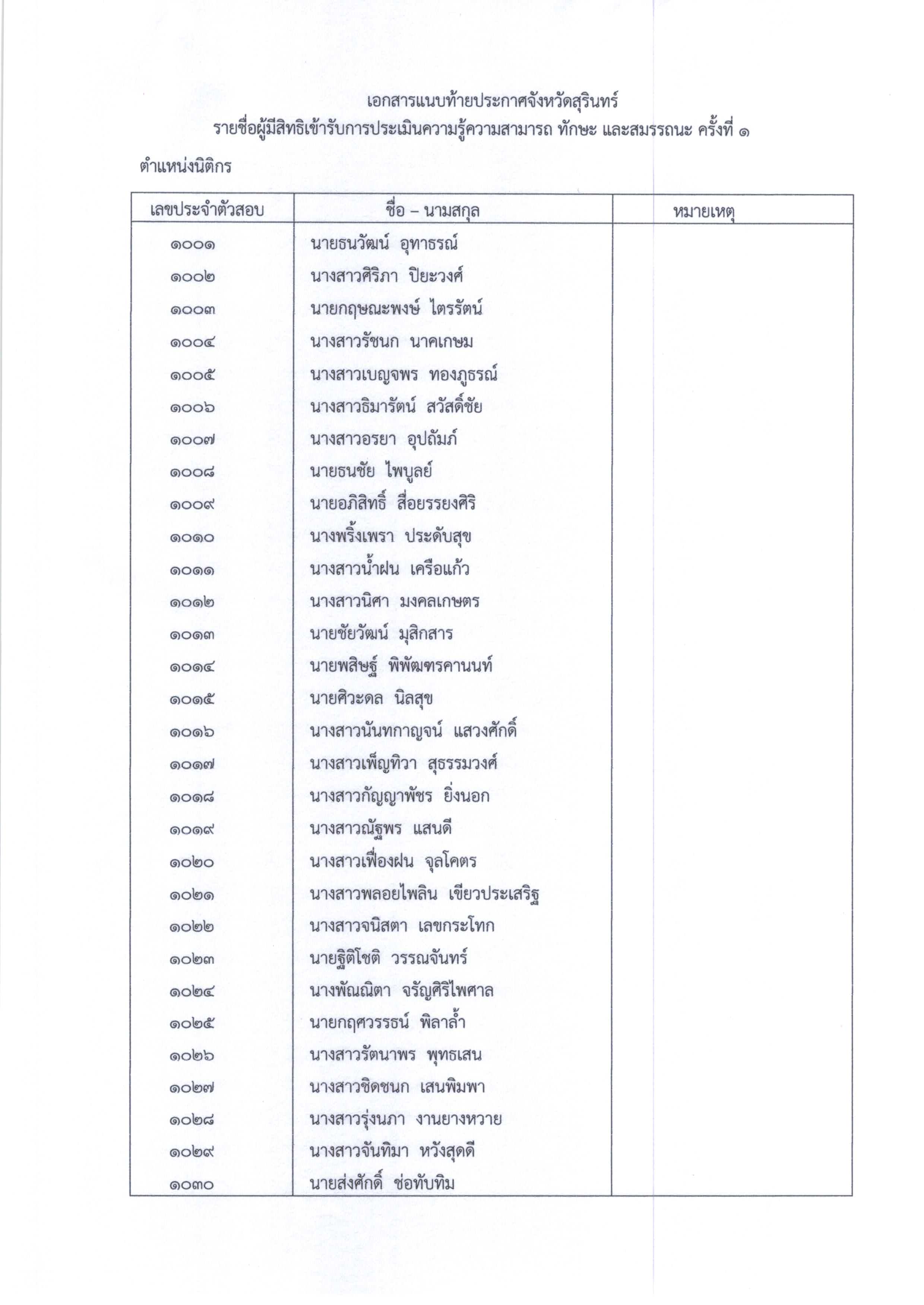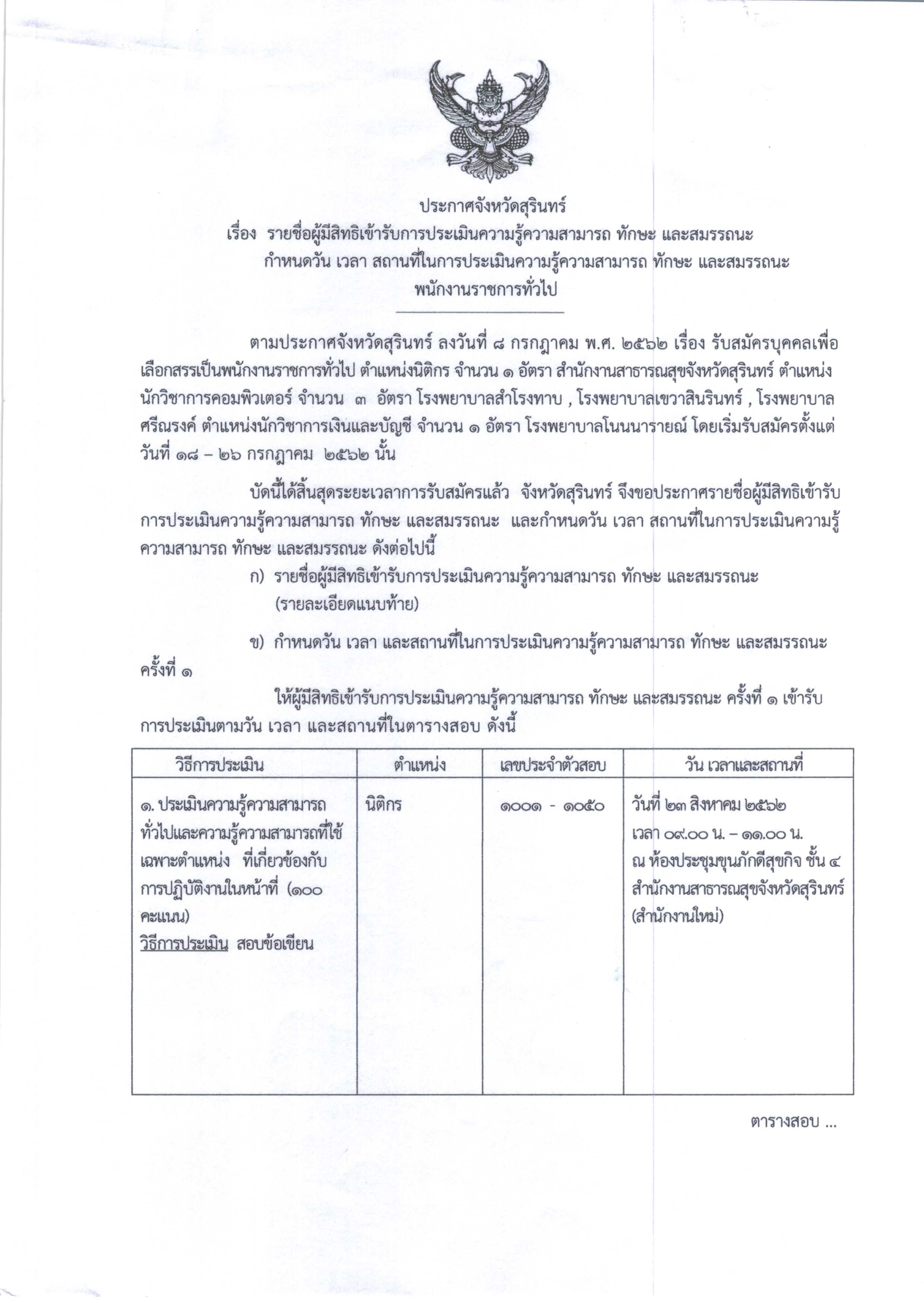 ประกาศรายชื่อผู้มีสิทธิเข้ารับการประเมินความรู้ความสามารถ ทักษะ และสมรรถนะ กำหนดวัน เวลา สถานที่ในการประเมินความรู้ความสามารถ ทักษะ และสมรรถนะพนักงานราชการทั่วไป 3 ตำแหน่ง