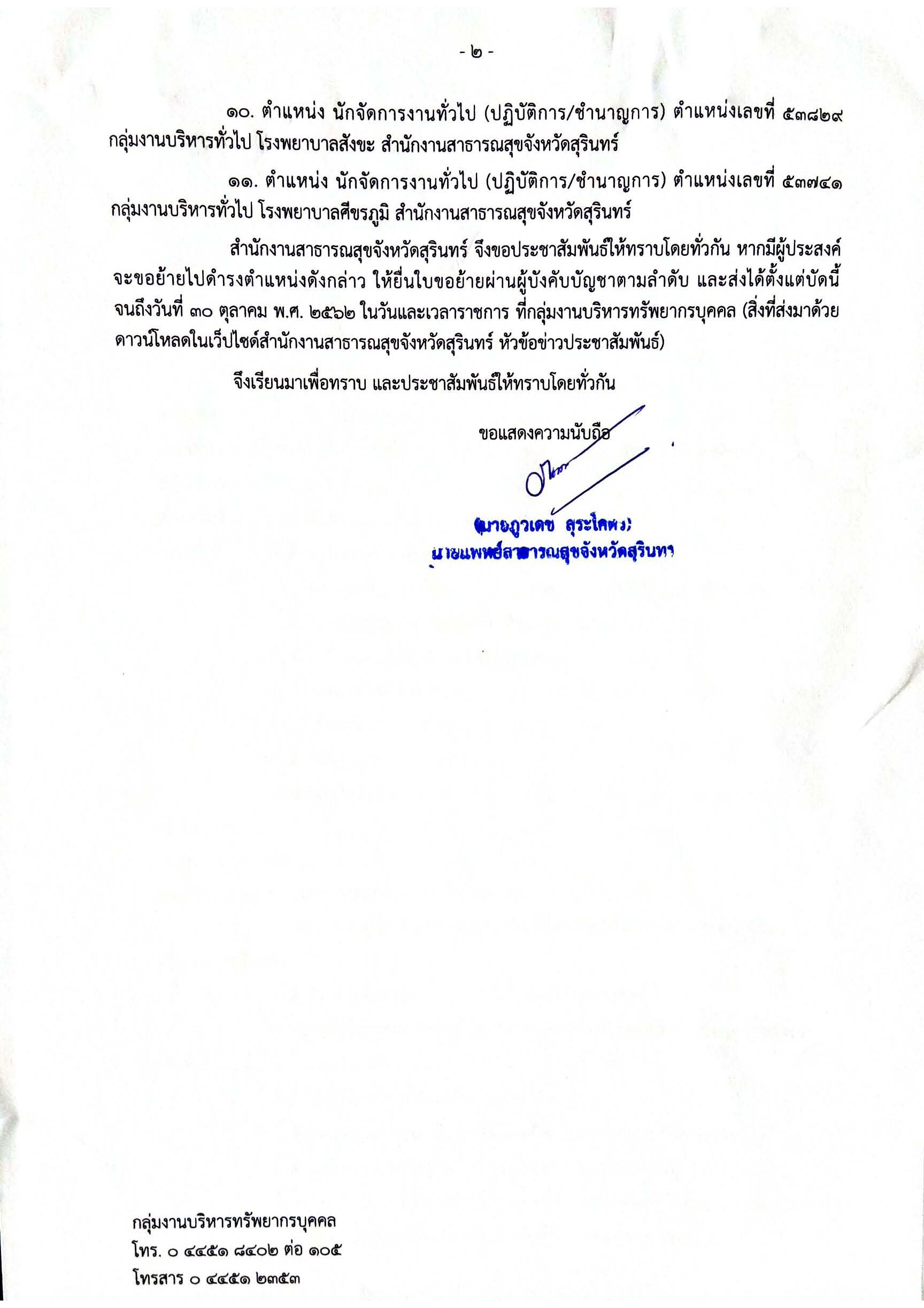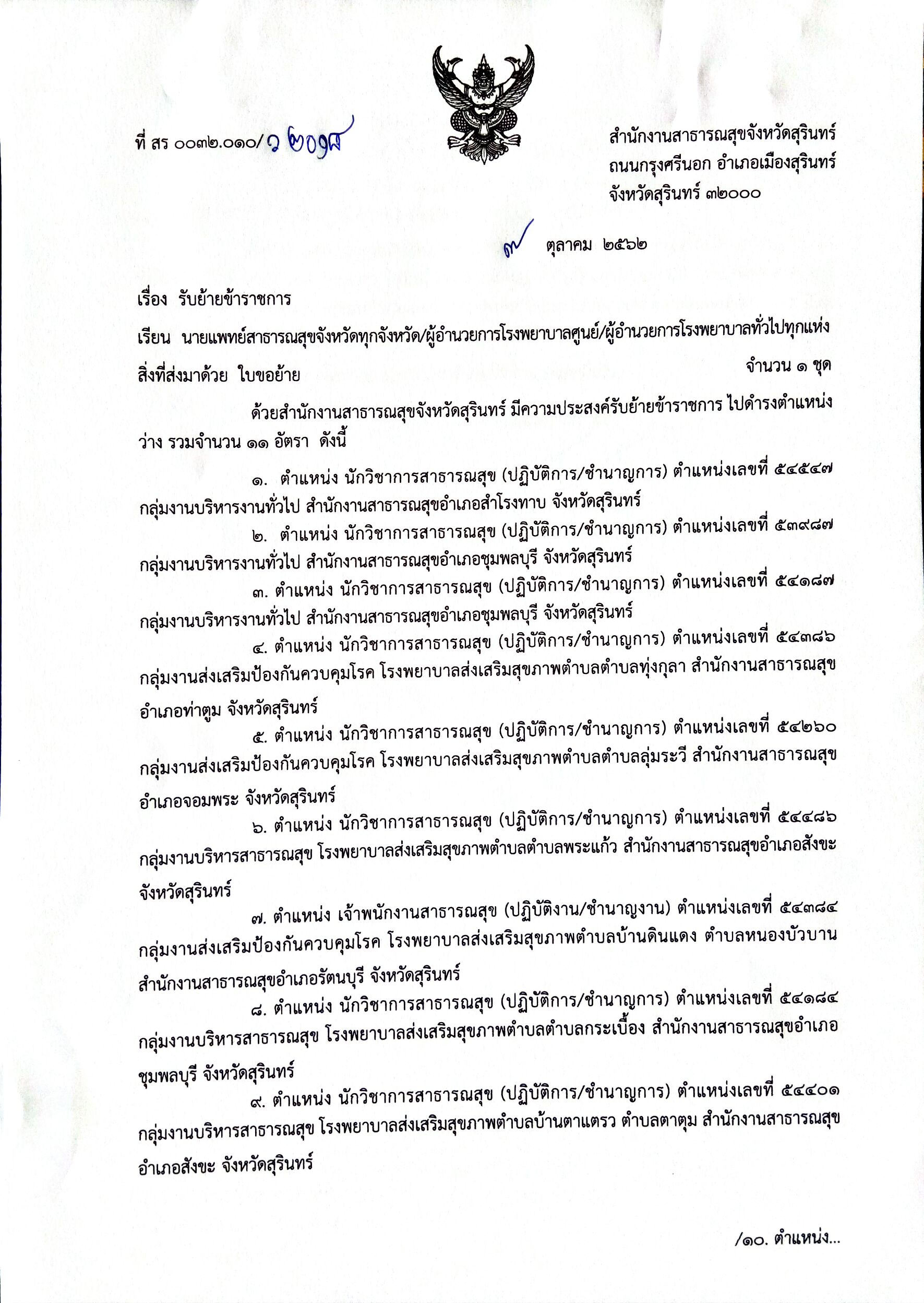สสจ.สุรินทร์ รับย้ายข้าราชการ
