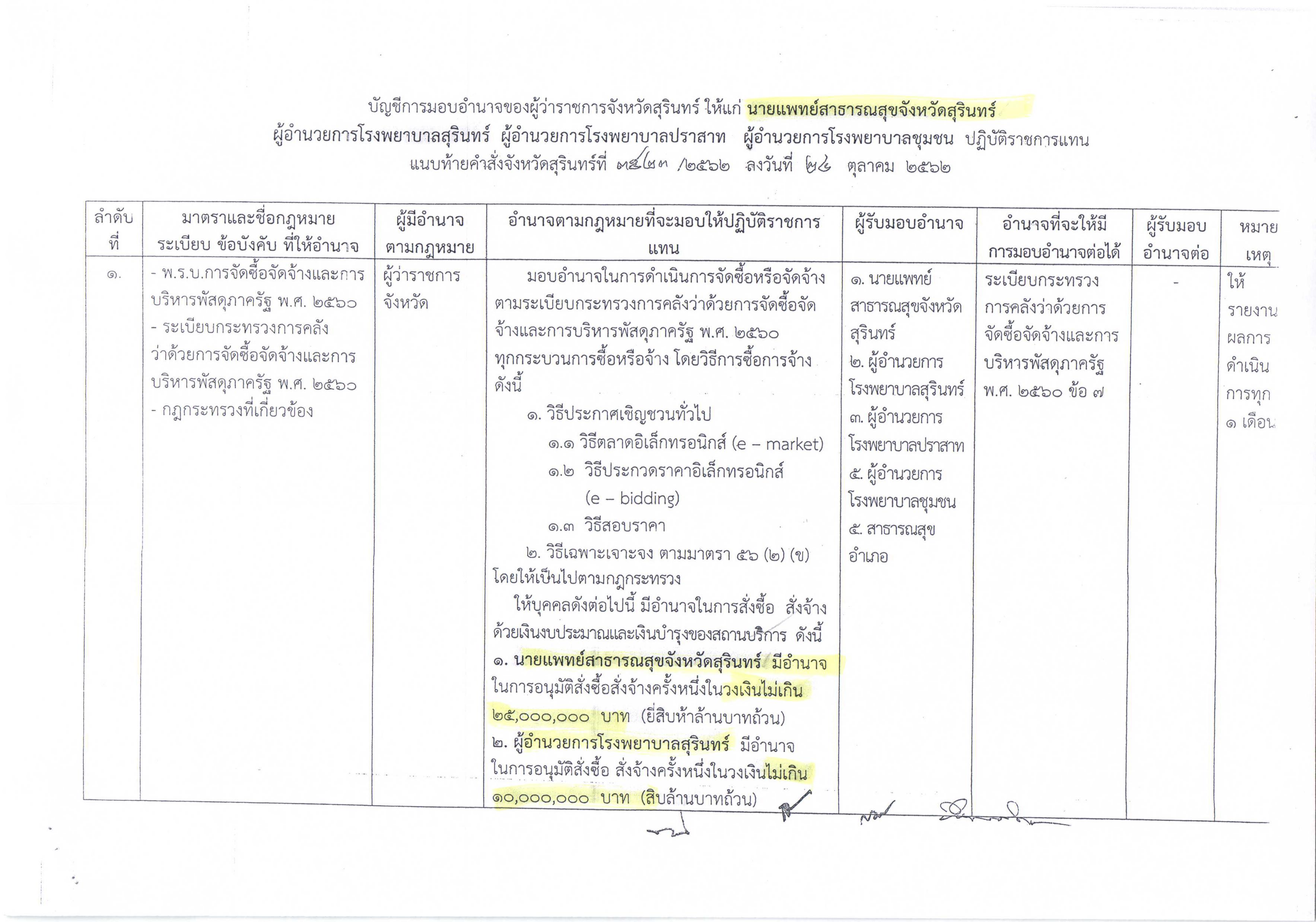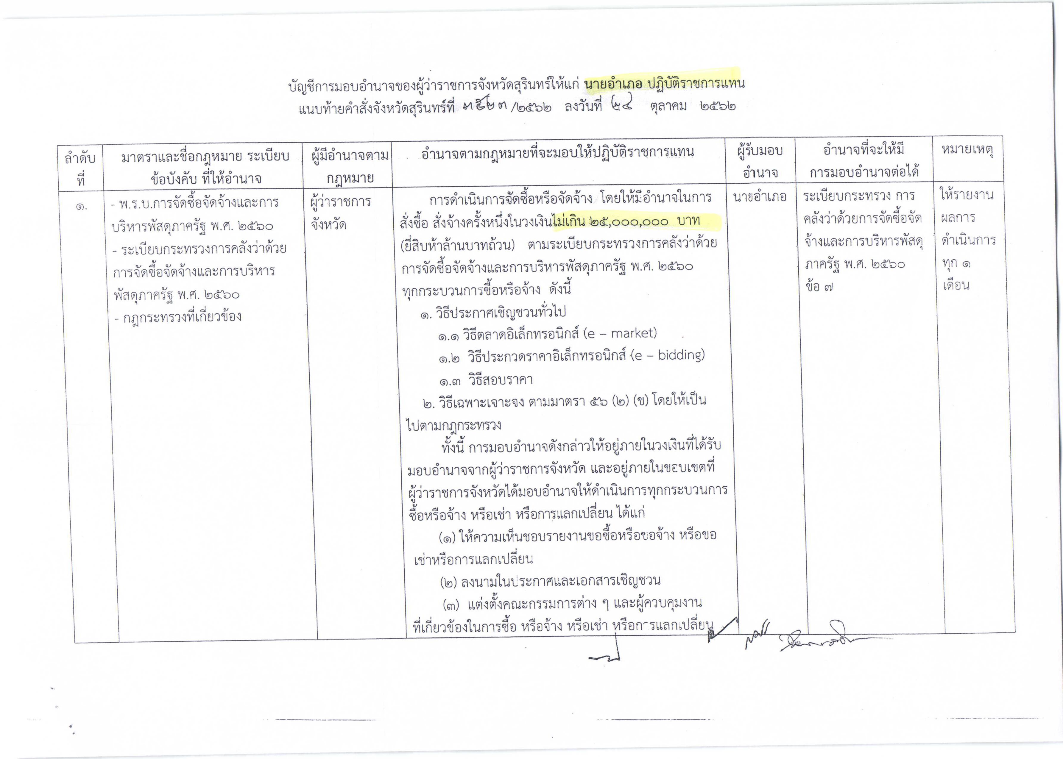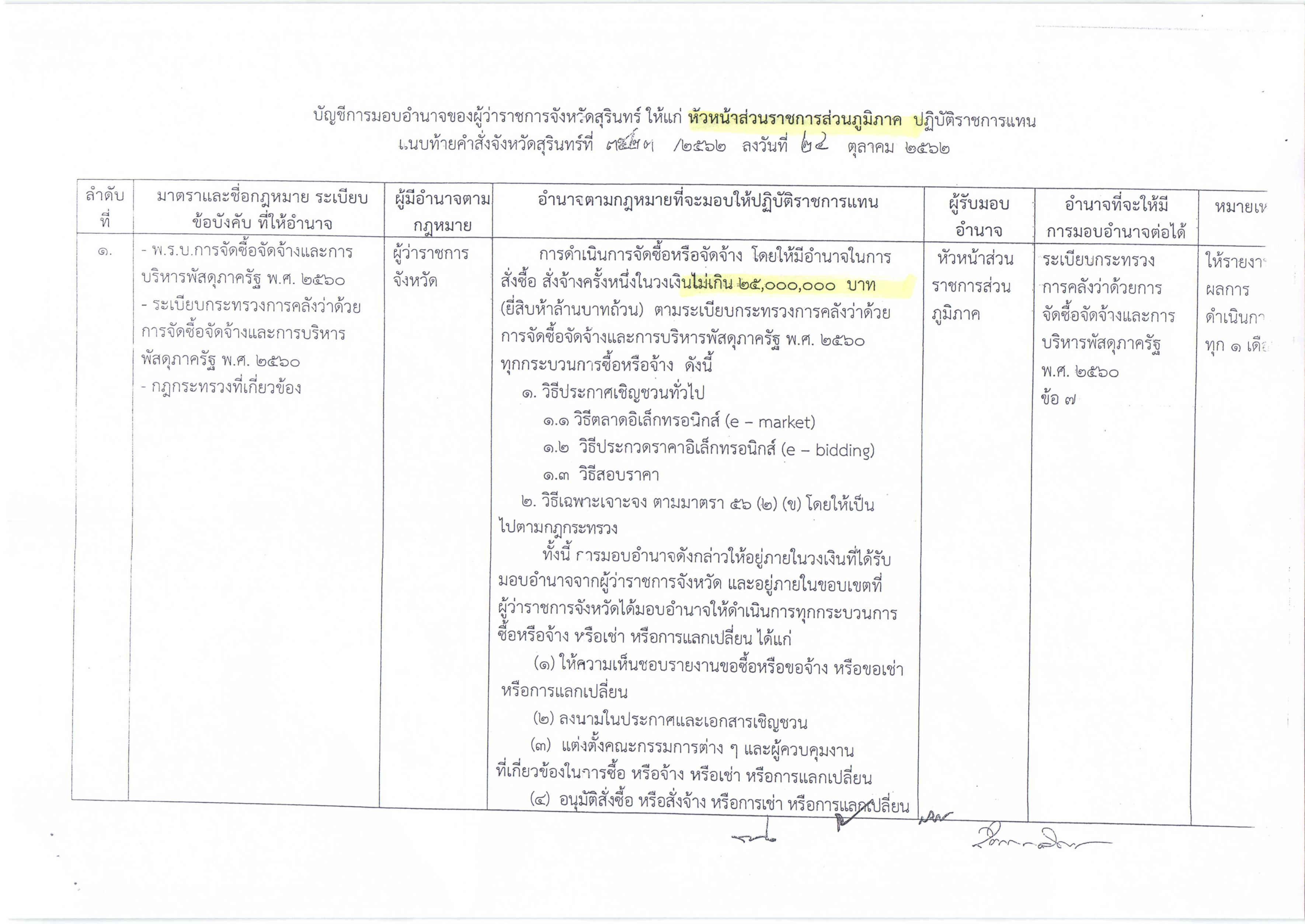แก้ไขการมอบอำนาจให้รองผู้ว่าราชการจังหวัดสุรินทร์ หัวหน้าส่วนราชการส่วนภูมิภาค และหัวหน้าส่วนราชการสังกัดราชการบริหารส่วนกลางที่มีสำนักงานตั้งอยู่ในจังหวัดสุรินทร์ปฏิบัติราชการแทน