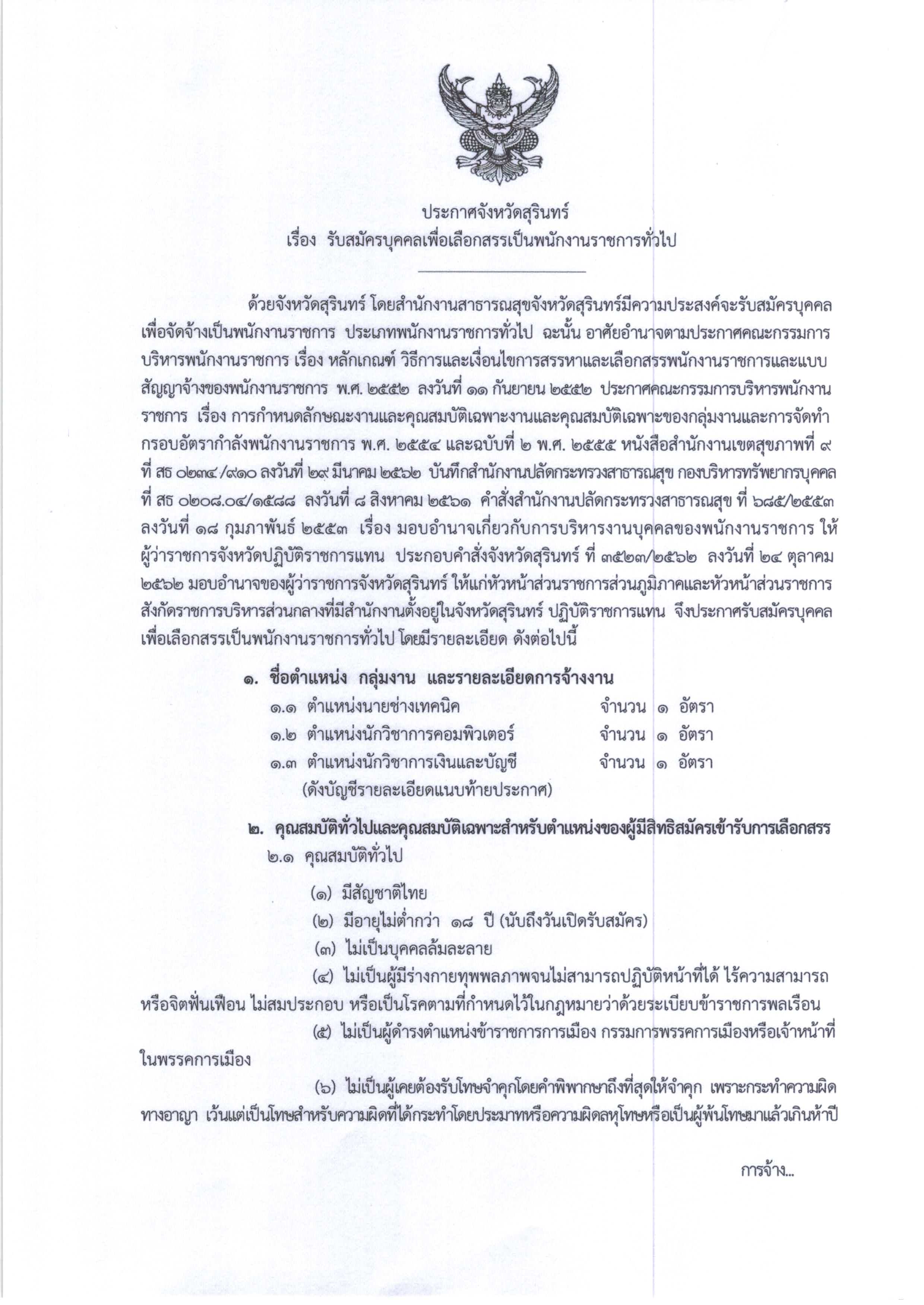 ประกาศรับสมัครบุคคลเพื่อเลือกสรรเป็นพนักงานราชการทั่วไป 3 ตำแหน่ง 3 อัตรา