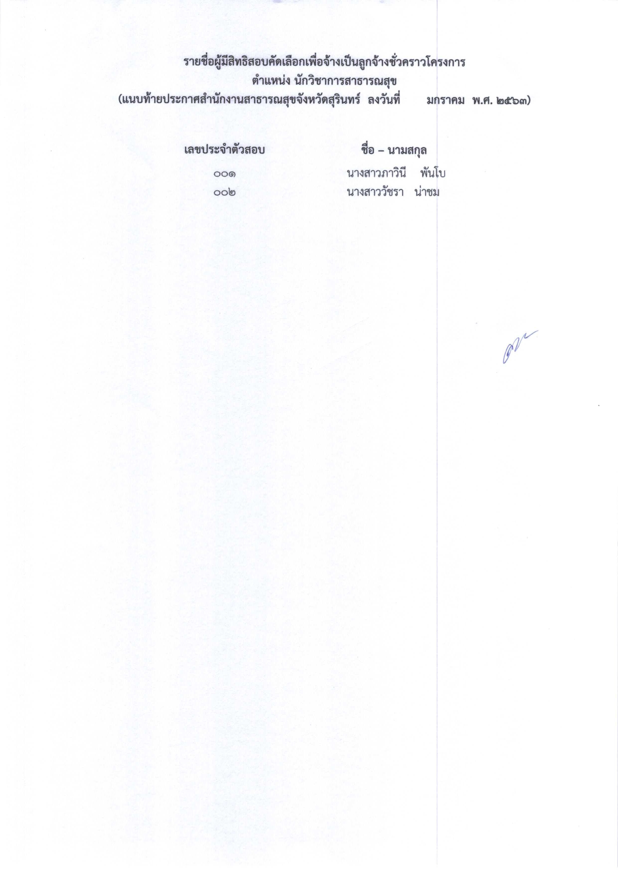ประกาศรายชื่อผู้มีสิทธิเข้ารับการประเมินความรู้ความสามารถ ทักษะ และสมรรถนะ กำหนดวัน เวลา สถานที่ในการประเมินความรู้ความสามารถ ทักษะ และสมรรถนะพนักงานราชการทั่วไป 3 ตำแหน่ง