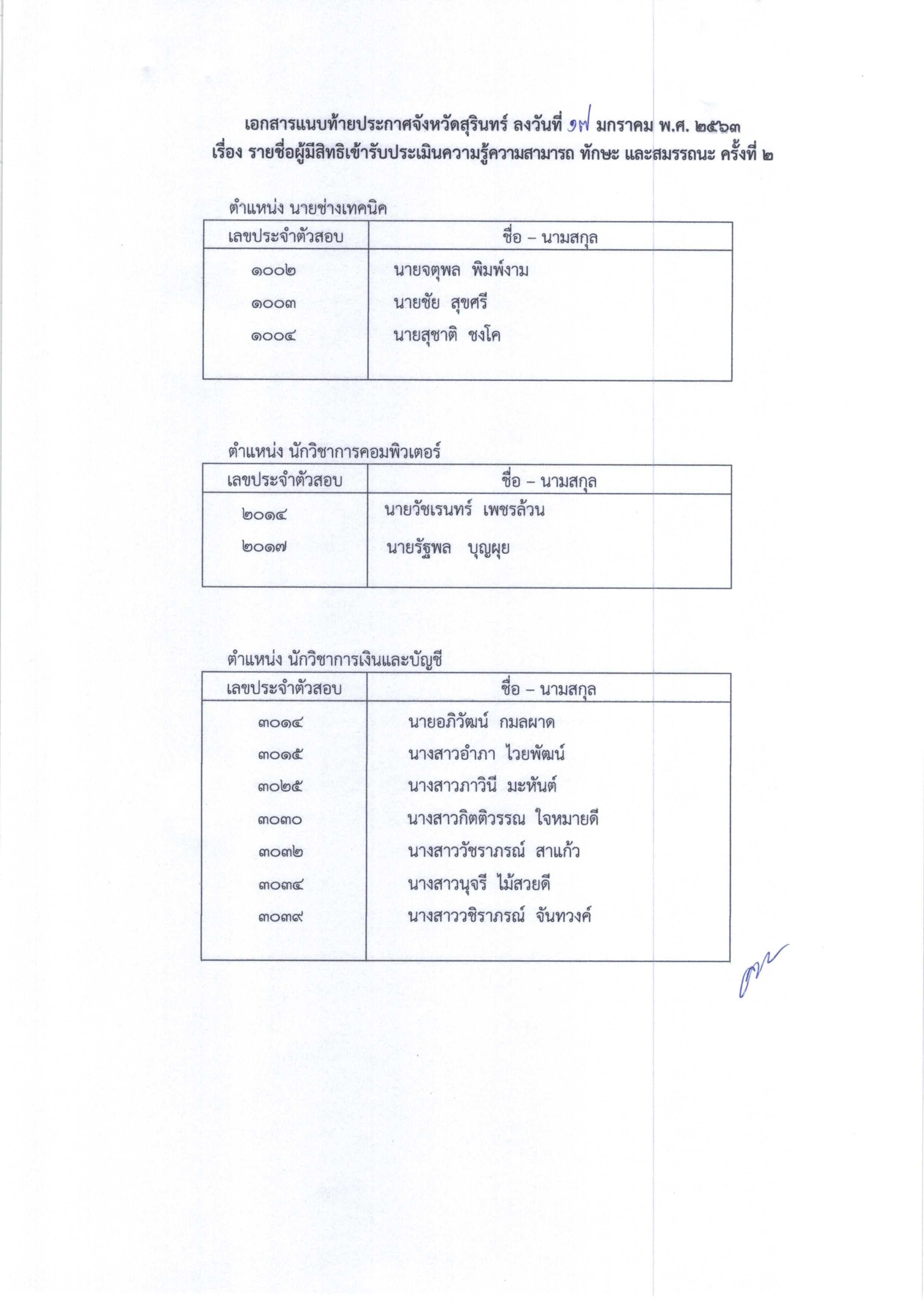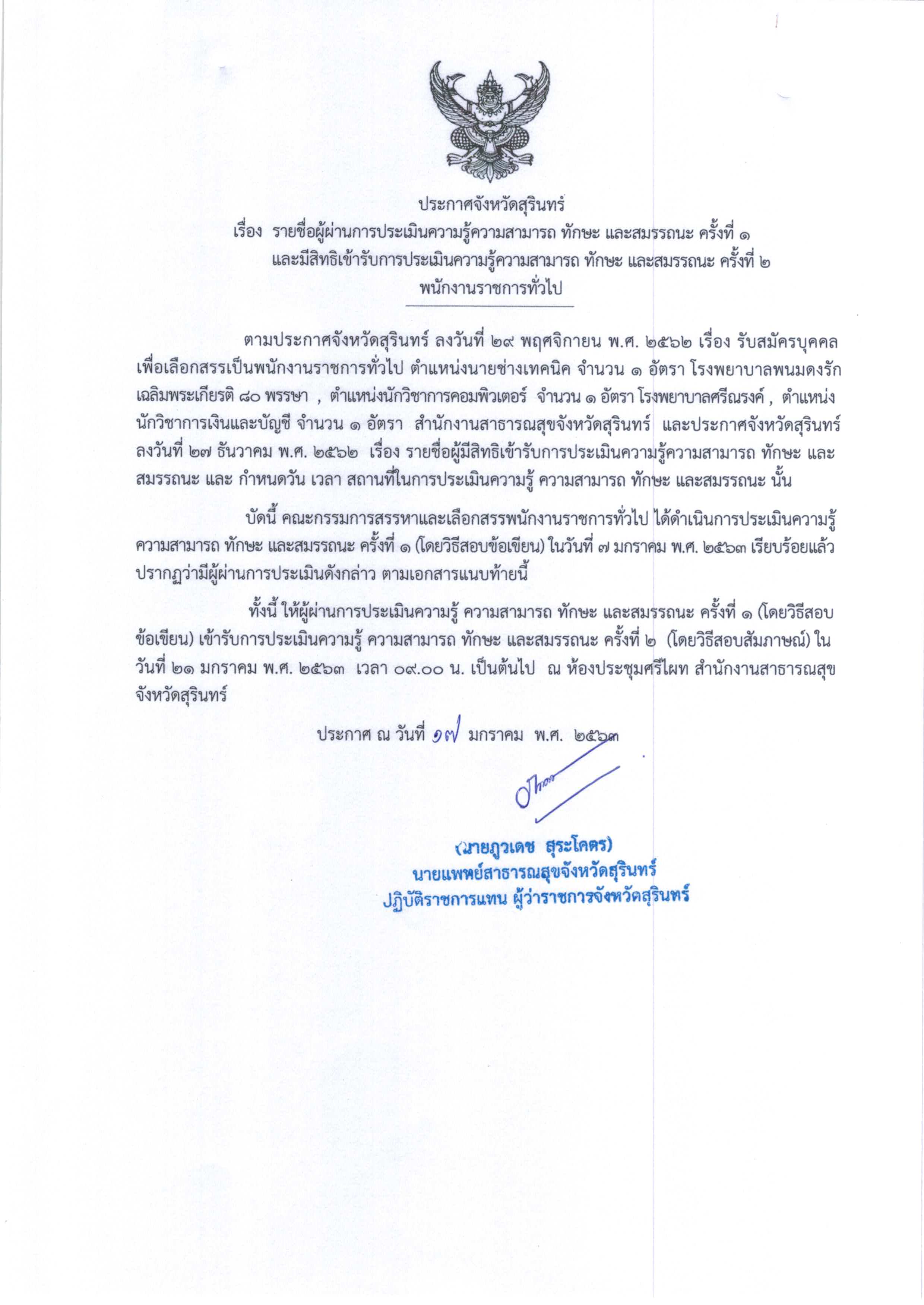ประกาศรายชื่อผู้ผ่านการประเมินความรู้ความสามารถ ทักษะ และสมรรถนะ ครั้งที่ 1 และมีสิทธิเข้ารับการประเมินฯครั้งที่ 2 พนักงานราชการ 3 ตำแหน่ง