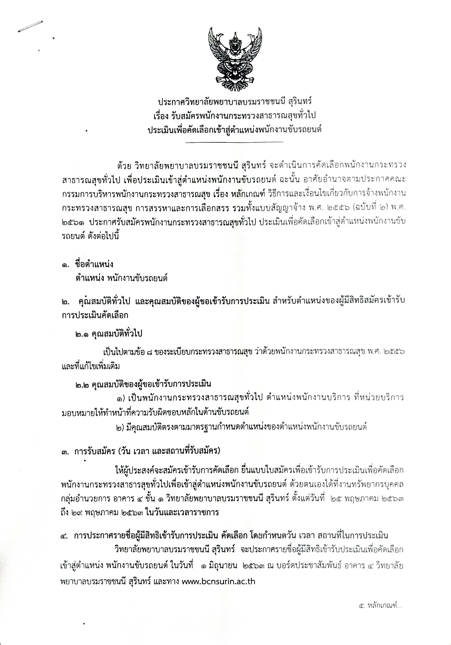 วิทยาลัยพยาบาลบรมราชชนนีสุรินทร์ รับสมัครพนักงานกระทรวงสาธารณสุข