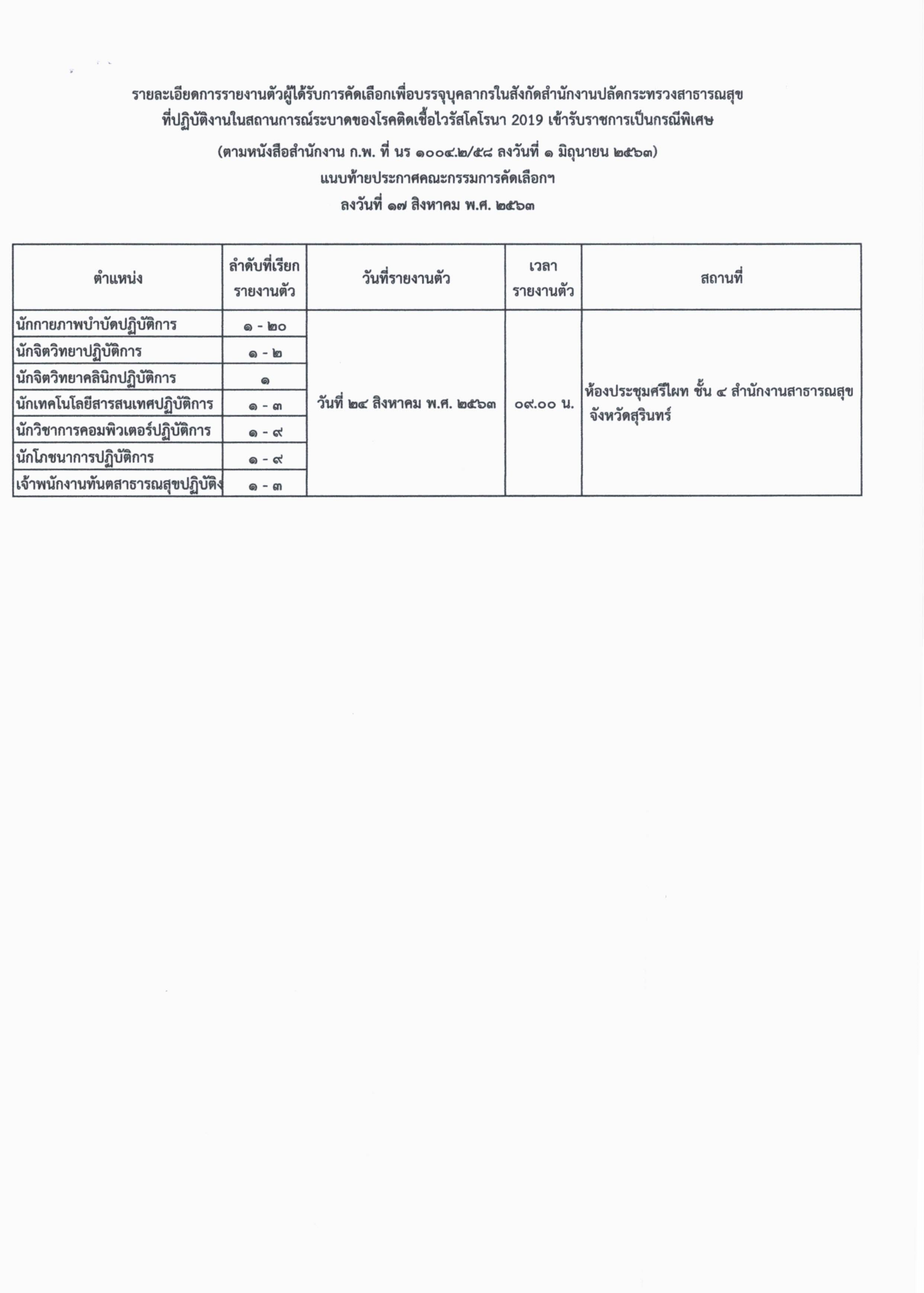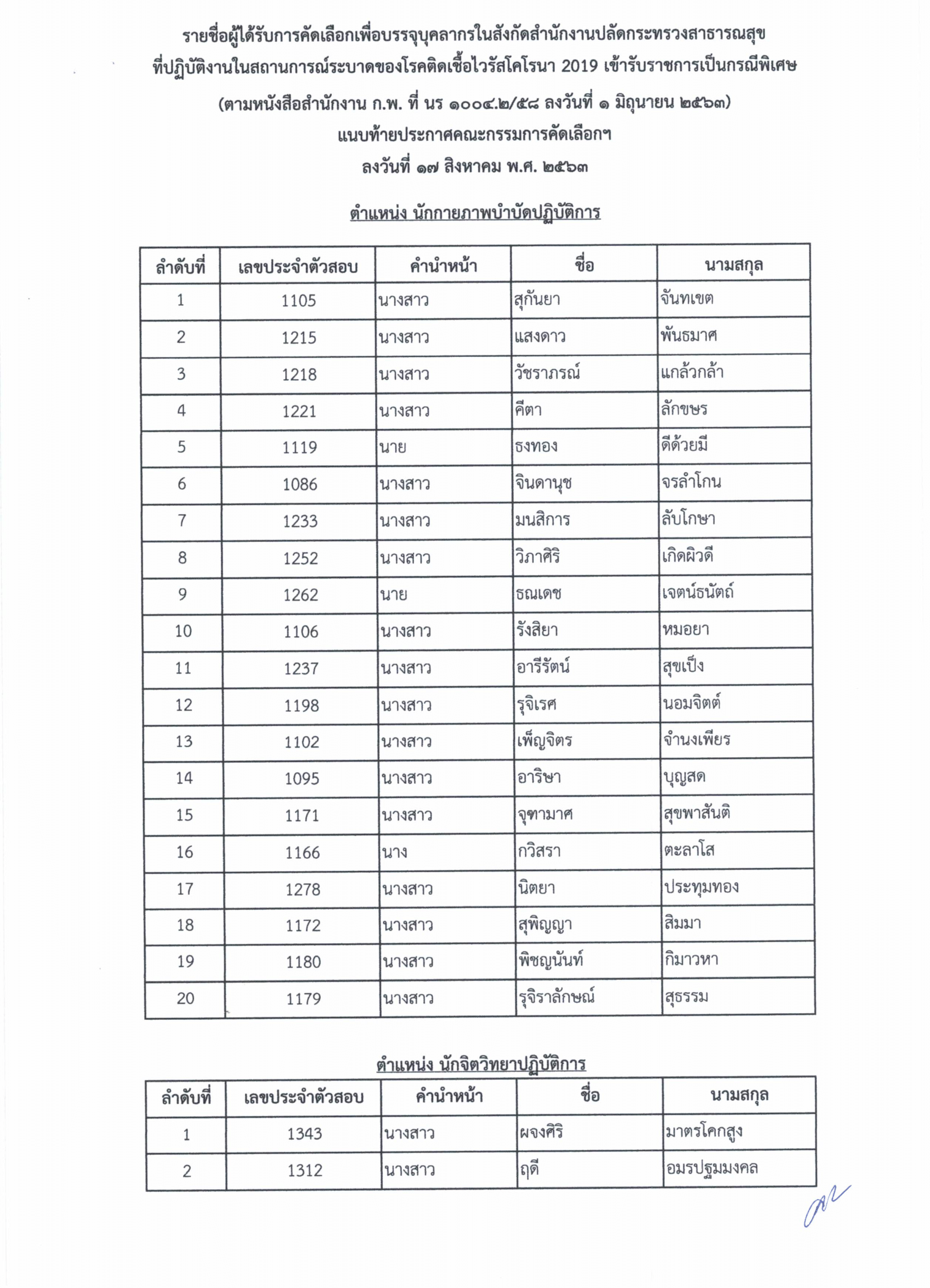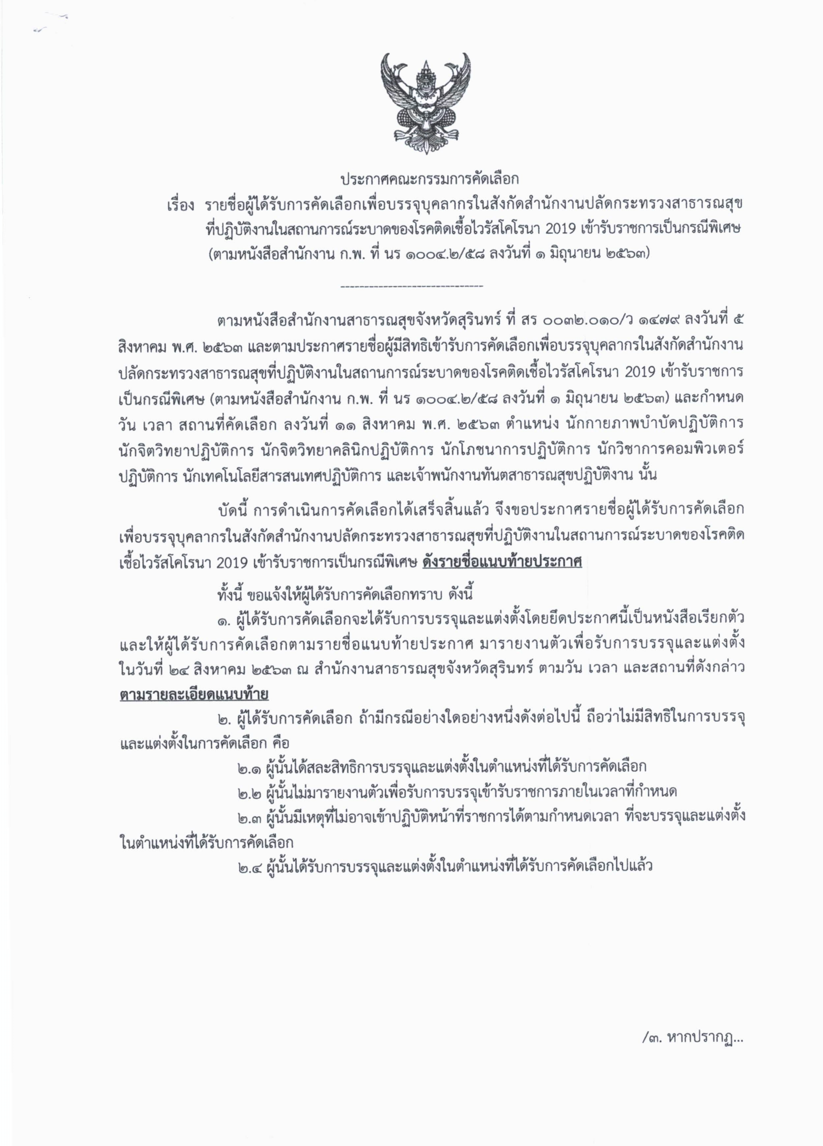 ประกาศรายชื่อผู้ได้รับคัดเลือกเข้ารับราชการ ในสถาณการณ์ระบาด COVID-19