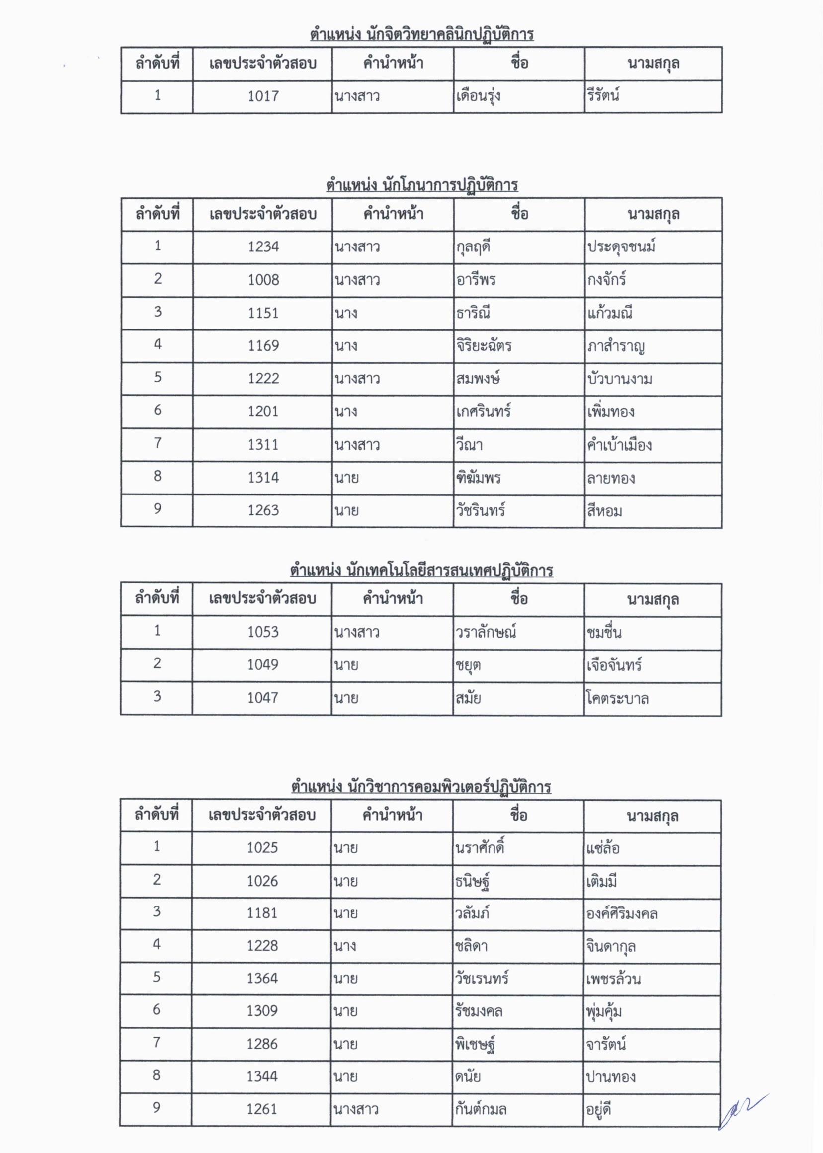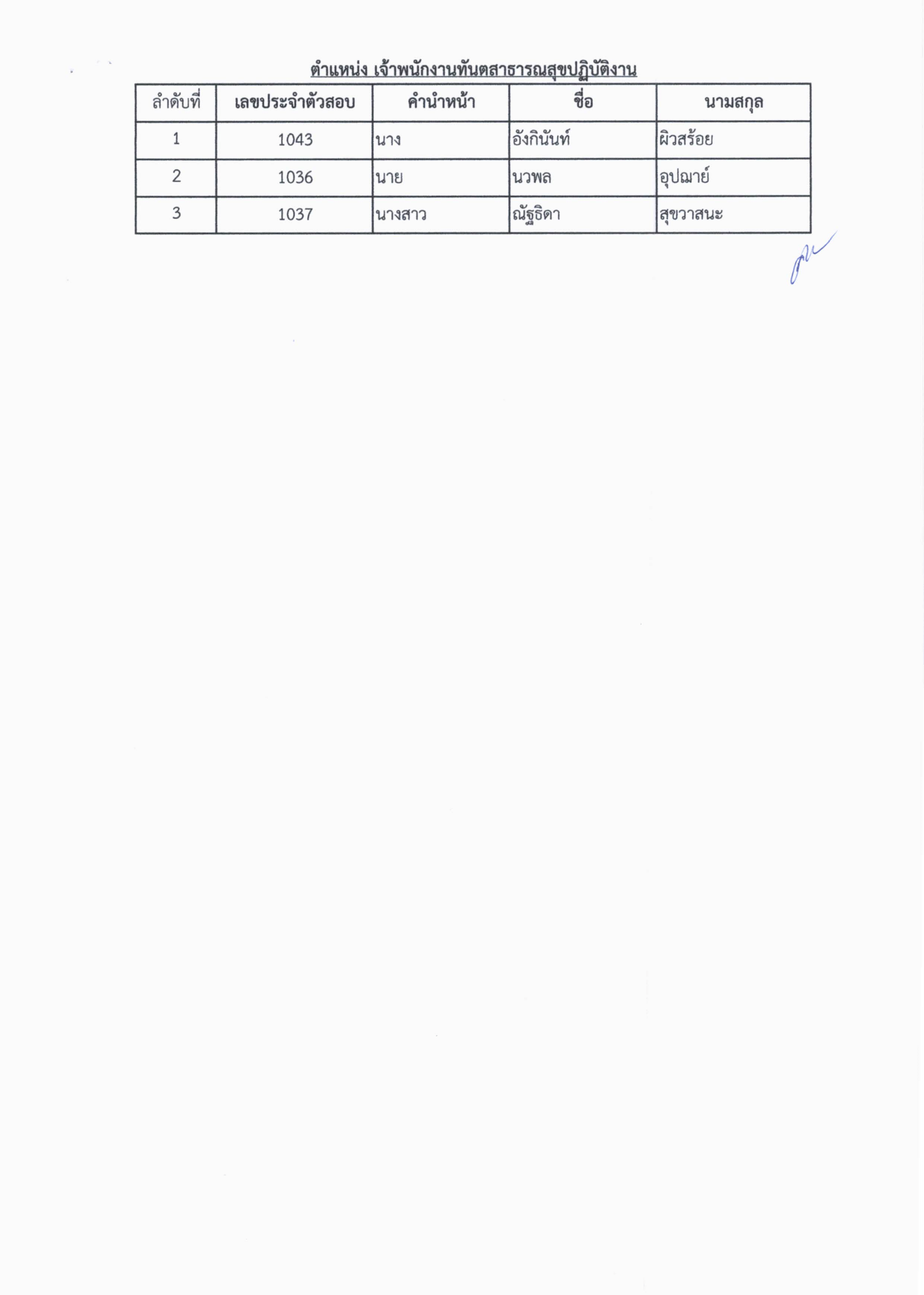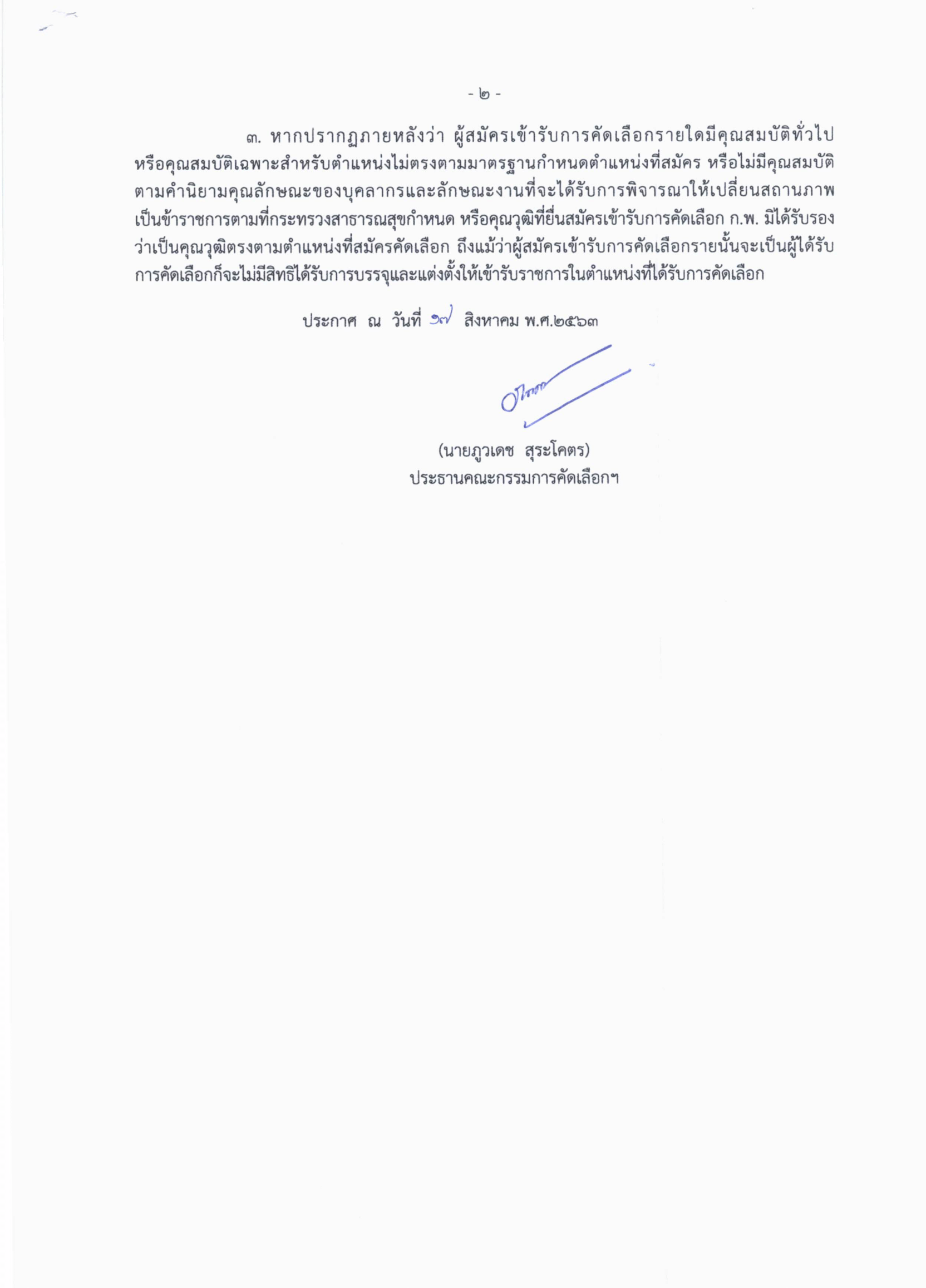 ประกาศรายชื่อผู้ได้รับคัดเลือกเข้ารับราชการ ในสถาณการณ์ระบาด COVID-19