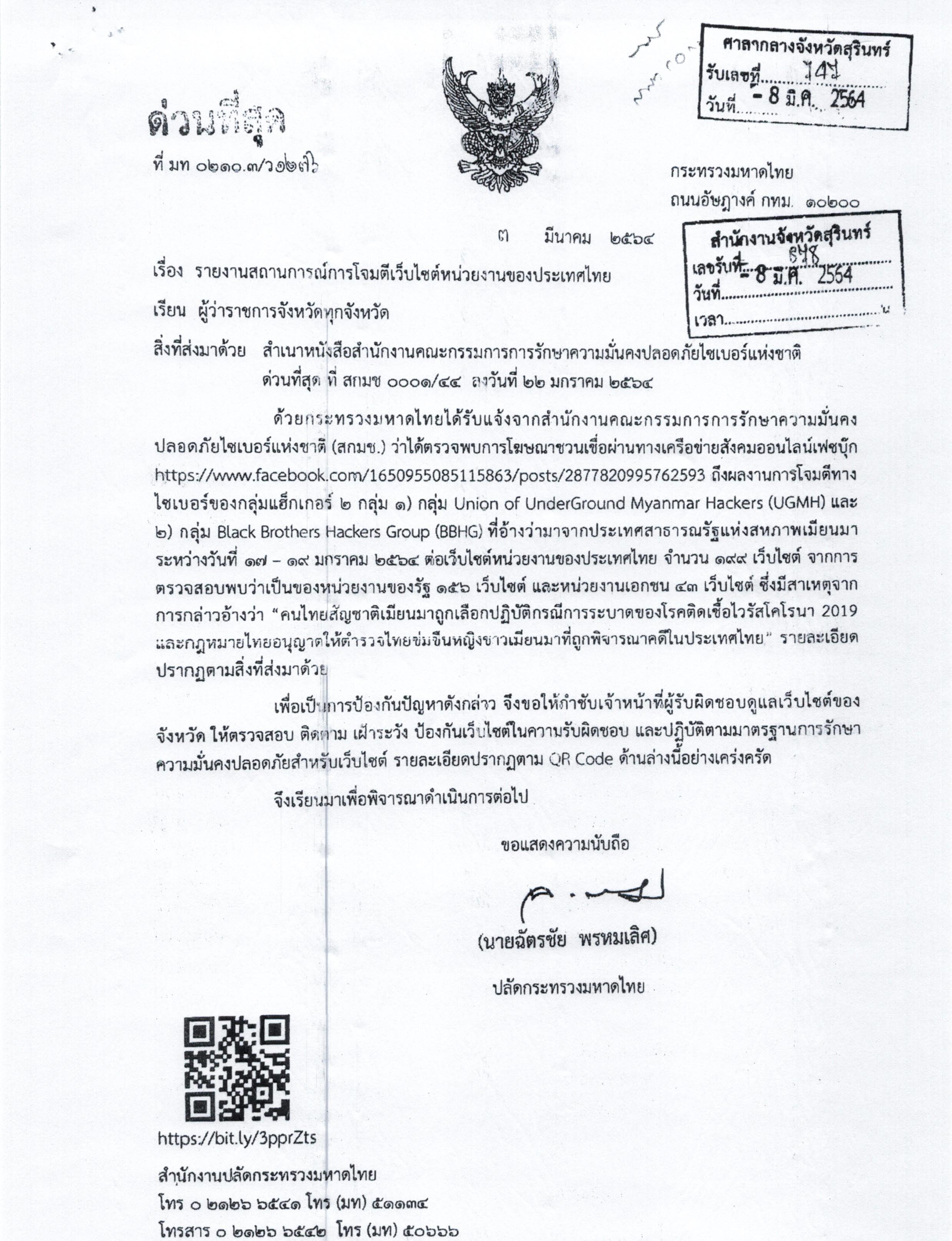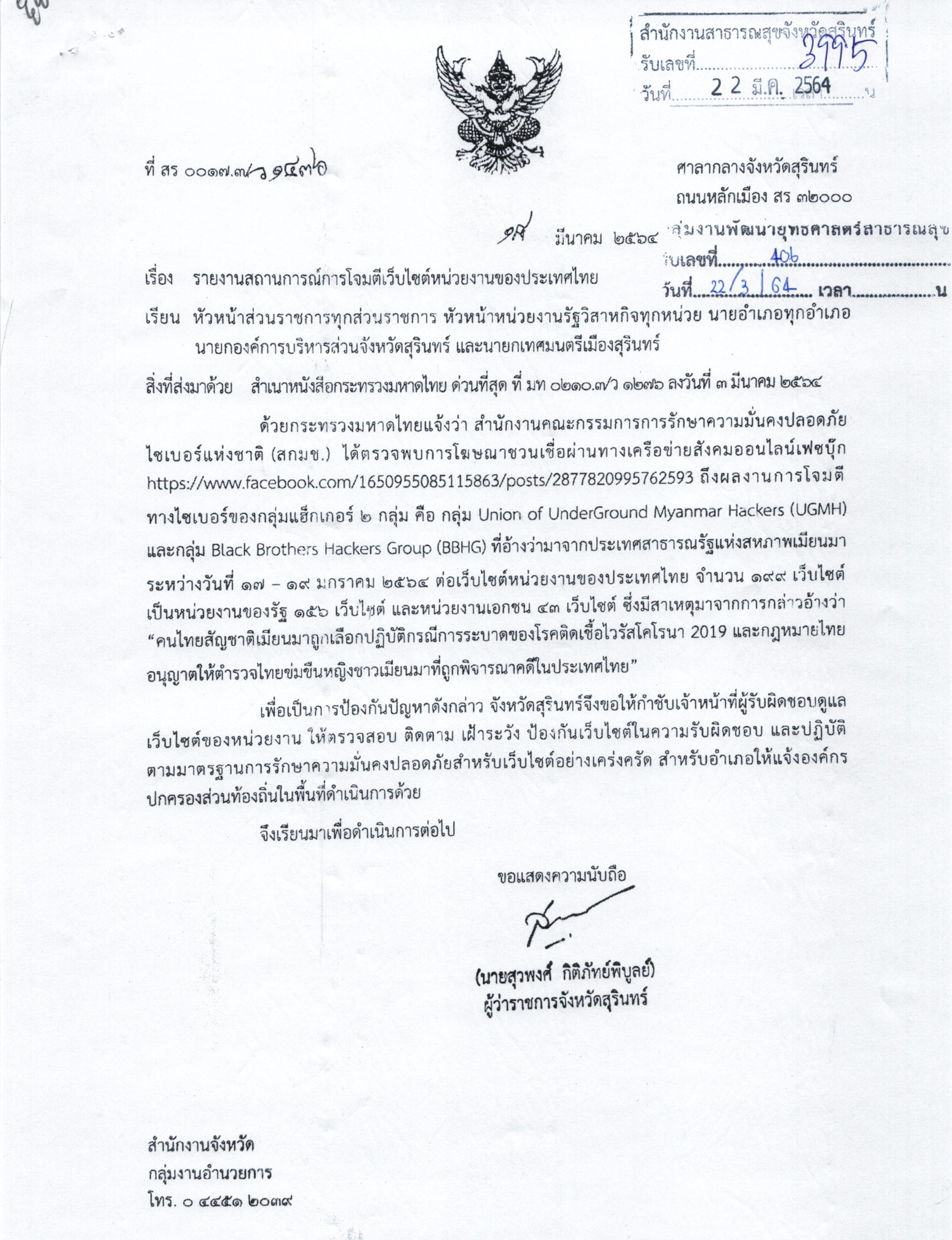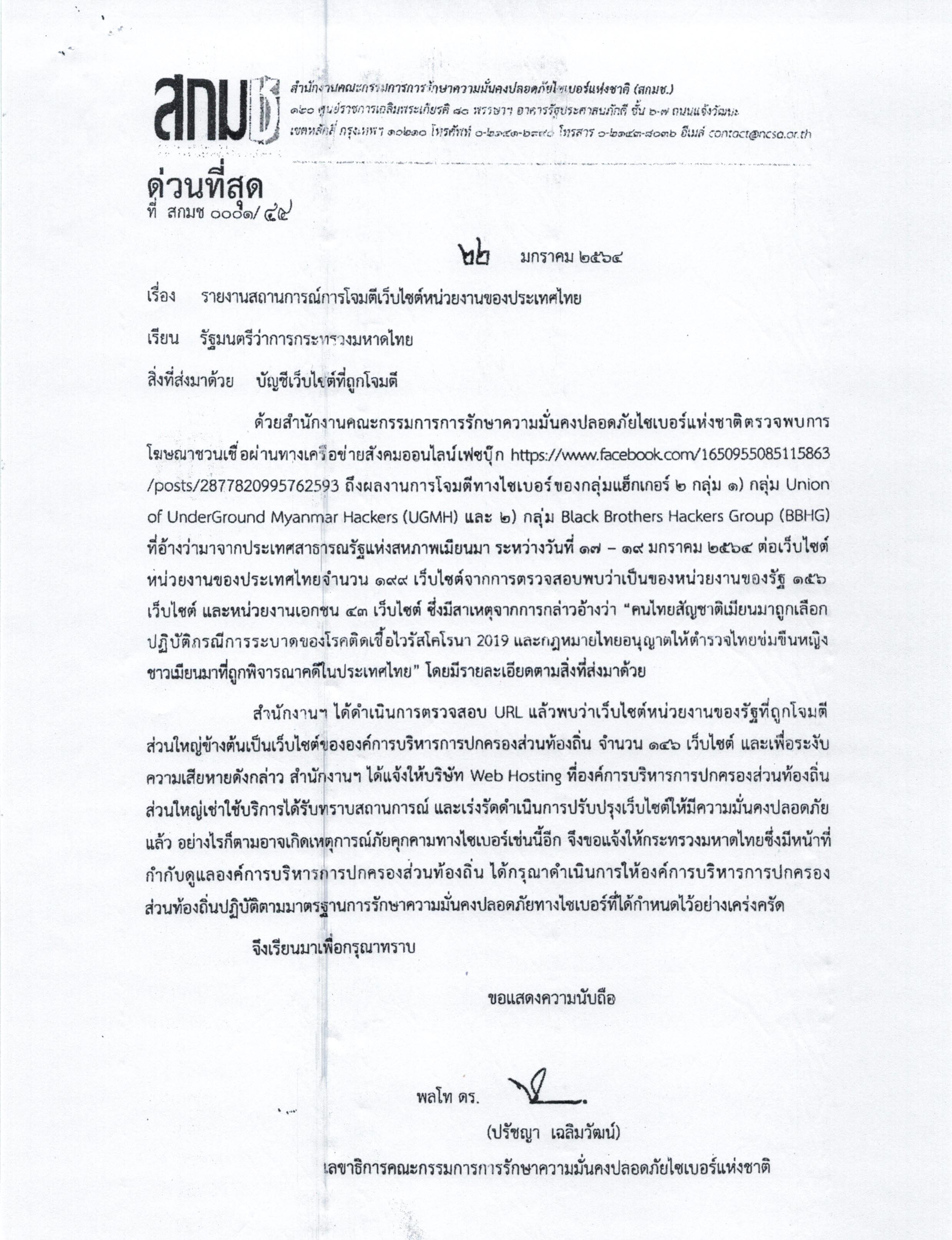 รายงานสถารการณ์การโจมตีเว็บไซต์หน่วยงานของประเทศไทย